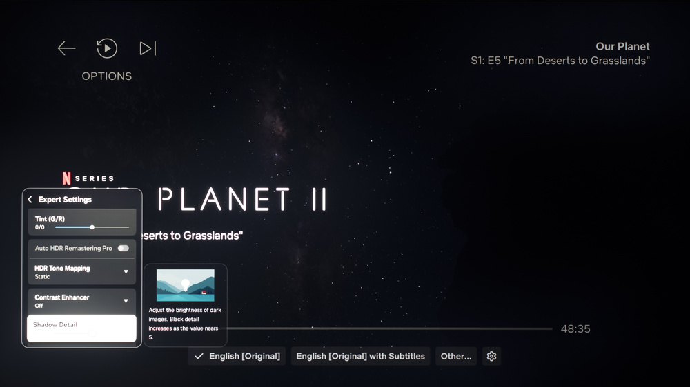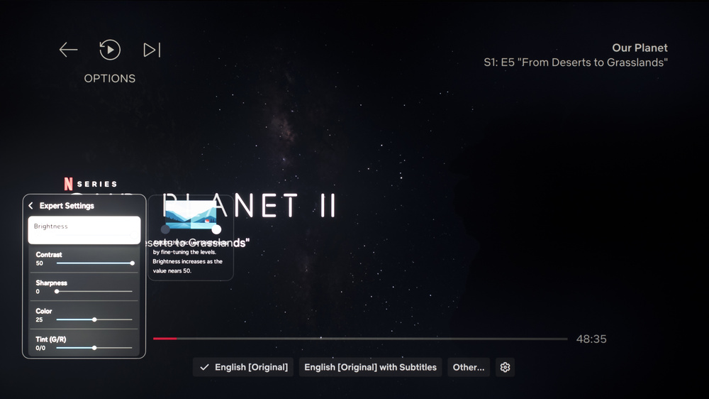 The TV supports HDR10+ from native apps and external devices. As with normal HDR content, when you start playing HDR10+ content, some settings change automatically. Since we don't specifically test HDR10+, we don't have exact settings for it, but they should be the same as our HDR10 settings.