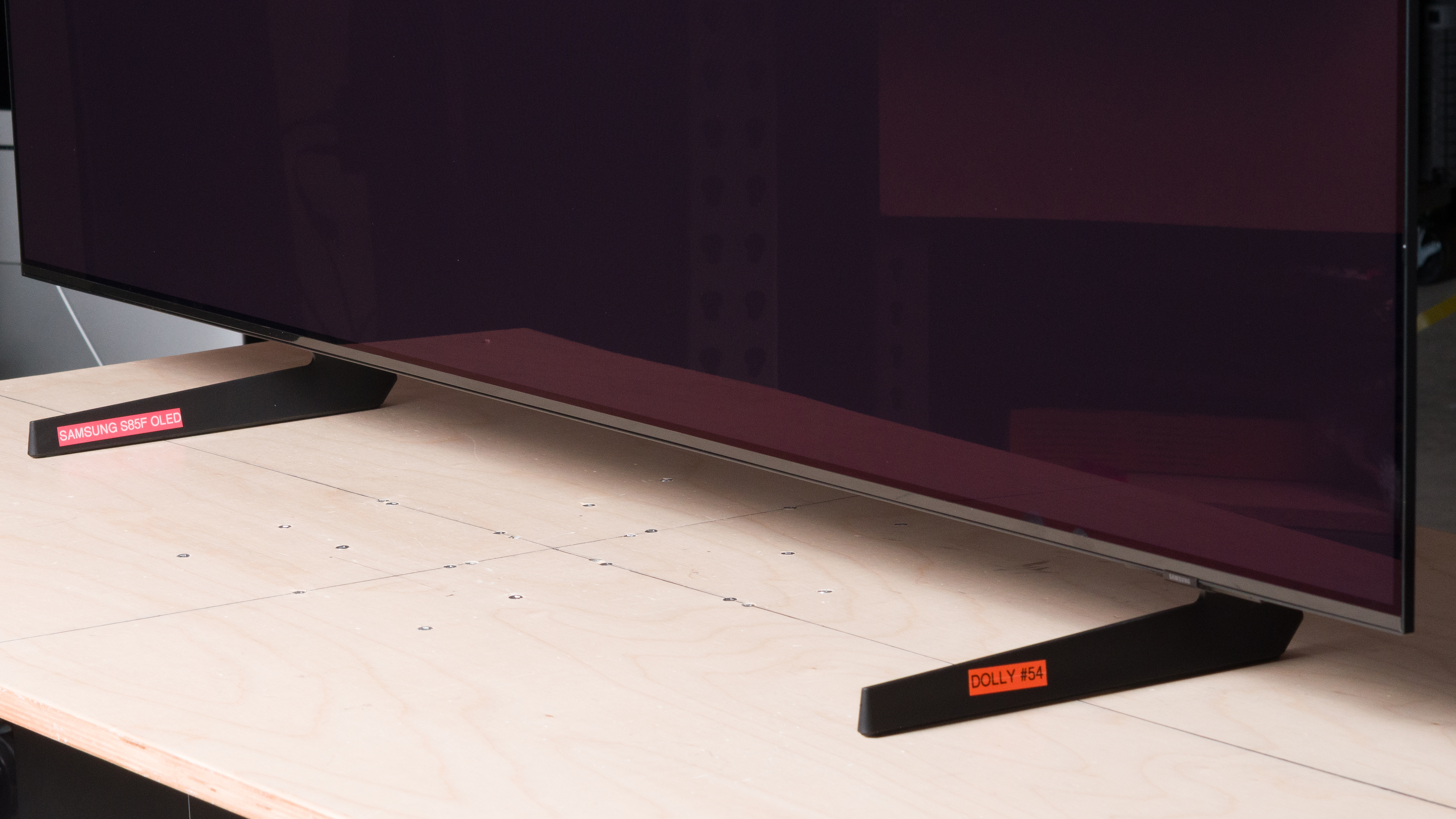 We bought and tested the 65-inch QD-OLED Samsung S85F, and these results are also valid for the 55-inch model. It's also available in 77 and 83-inch options, but those use WOLED panels, so they perform differently. Whether or not you get a QD-OLED panel could differ depending on the retailer as well, so pay attention to the model code. If the last four digits end in FXZA, the TV should have a QD-OLED panel, but if the code ends in EXZA, it likely has a WOLED panel. Outside of North America, all TV sizes use a WOLED panel, and our results aren't valid for those.