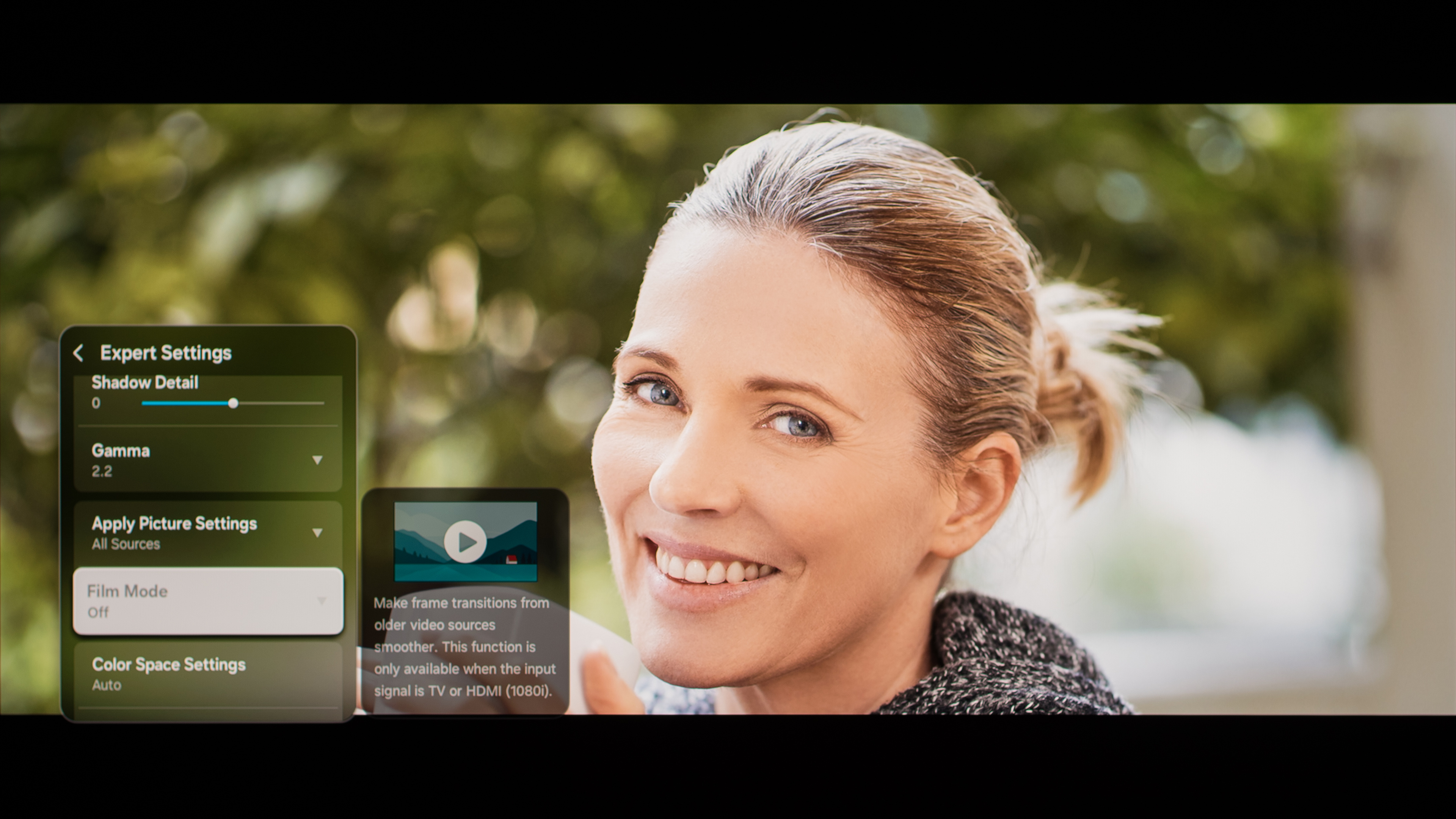 The TV has an optional feature to help reduce artifacts from interlaced sources. To use it, 'Film Mode' must be set to 'Auto.'
