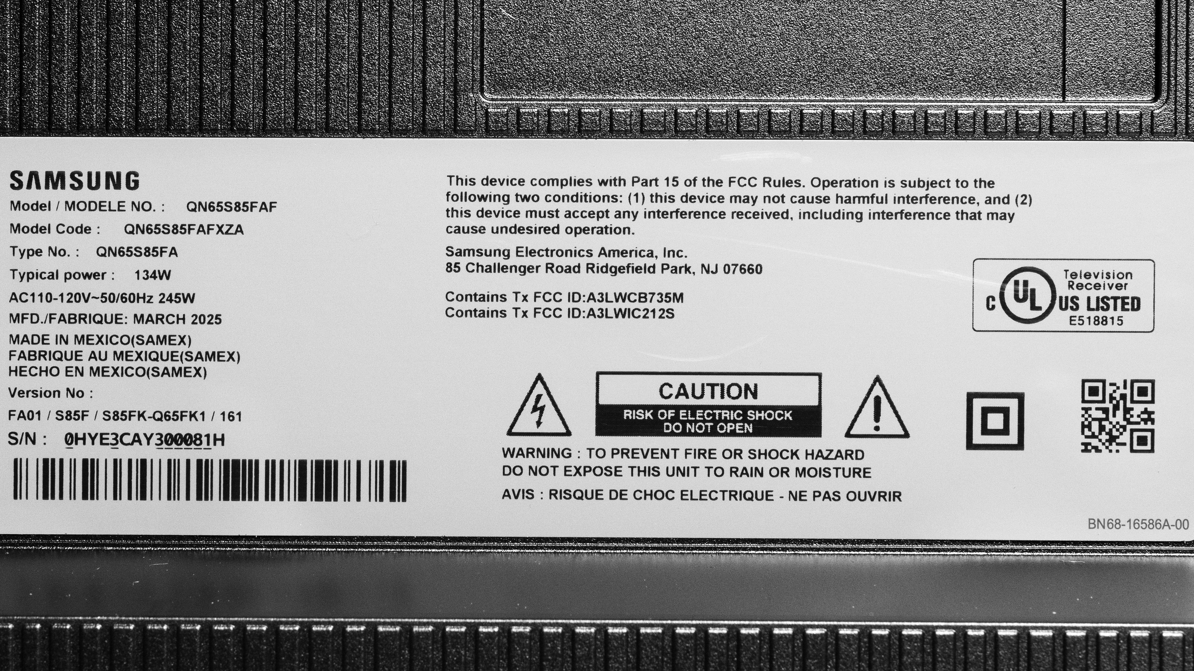 | 83" | QN83S85FAEXZA | QN83S85FAEXZC | N/A | WOLED |