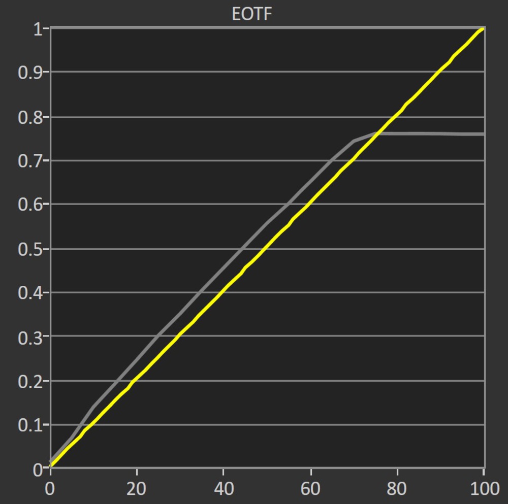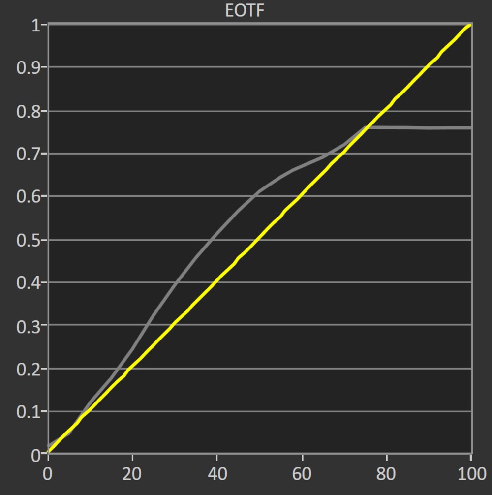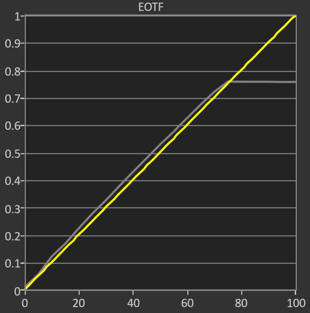 The TV has superb PQ EOTF tracking, so content is displayed at the correct brightness level. It's a bit over-brightened at very low luminance levels, so dark shadows are a tad too bright, but then the TV follows the curve near perfectly up until the panel's max brightness. At that point, the panel clips anything above its peak brightness for content mastered at 600, 1000, and 4000 nits, so there's a loss of fine detail.