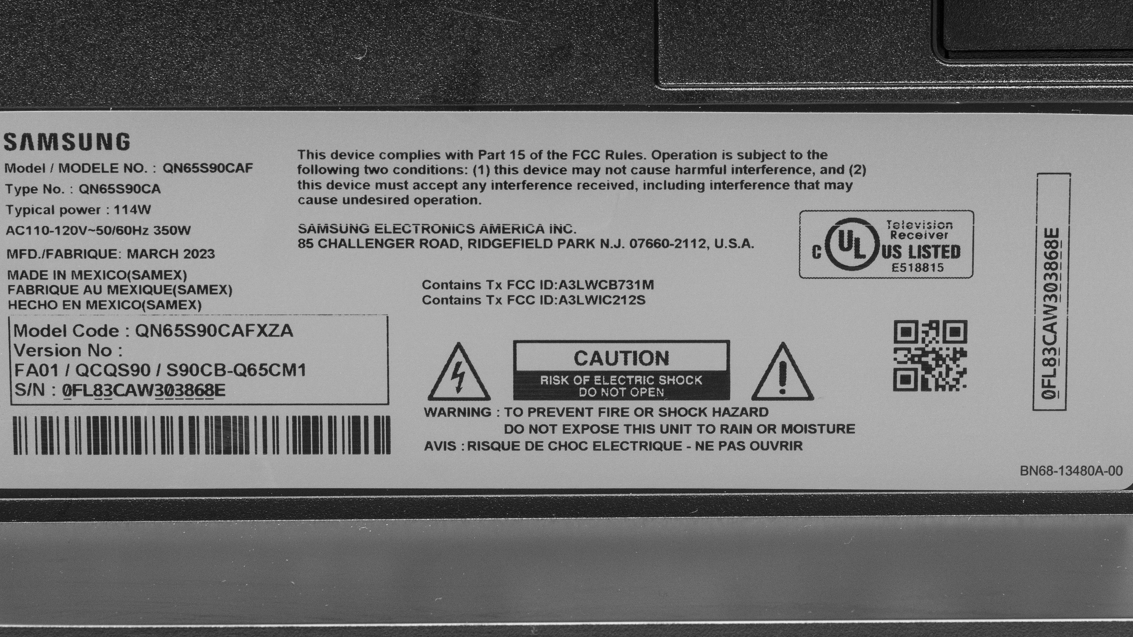 We bought and tested the 65-inch Samsung S90C, and these results are also valid for the 55-inch and 77-inch models. The 83-inch model uses a WOLED panel instead of the QD-OLED panel found in the smaller sizes, so our results don't apply to it. Note that the last five letters in the model number (AFXZA in this case) vary between retailers and individual regions, but there's no difference in performance. There are also regional models, like the Samsung S92C and the Samsung S93C, but they're identical to the Samsung S90C.