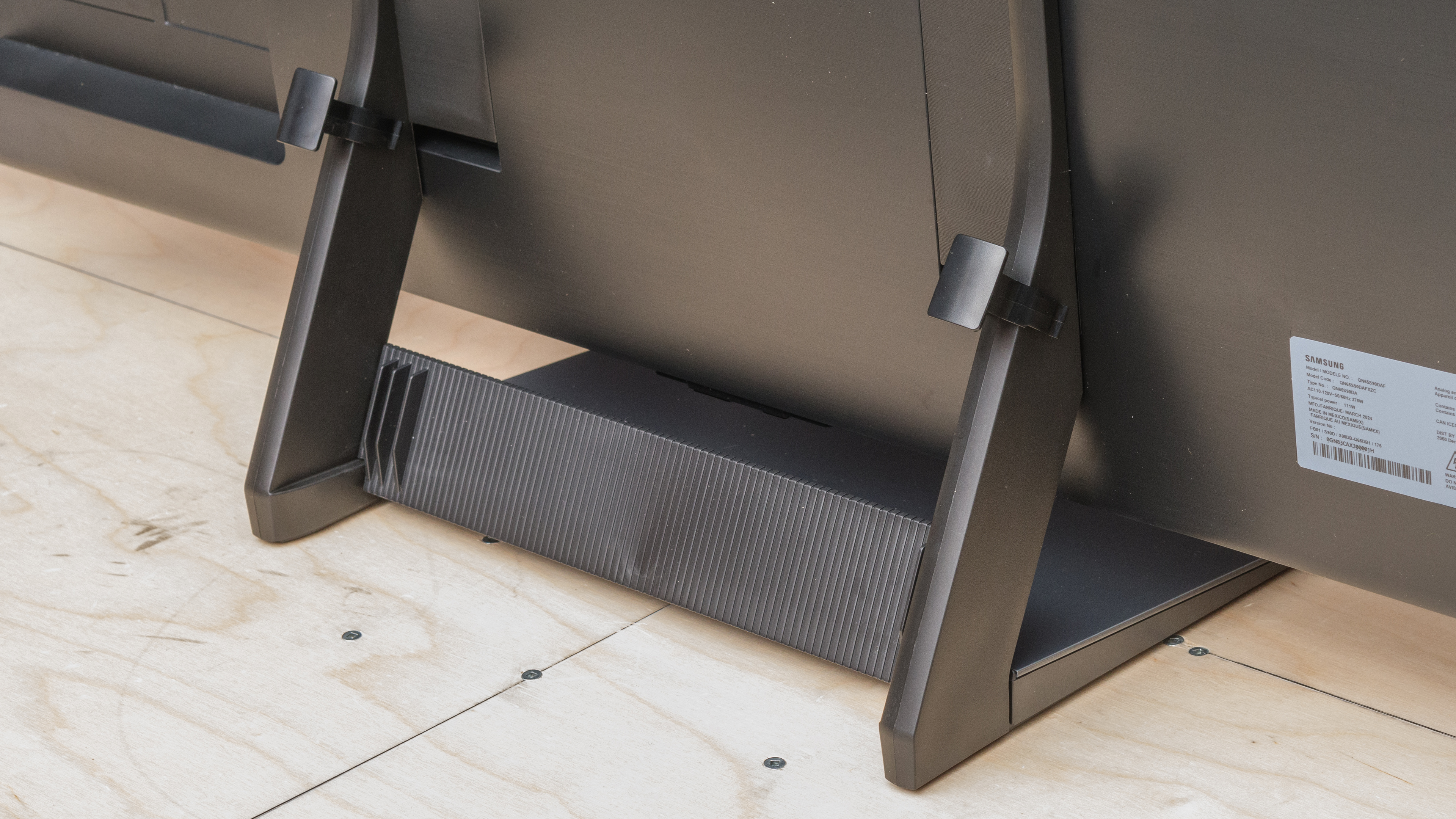 The Samsung S90D has good build quality overall. There's some wobble on the stand when the TV is pushed forward or backward, but it quickly settles and won't cause any problems. There is a bit of flexing on the plastic central housing on the back, but this is normal and isn't concerning.