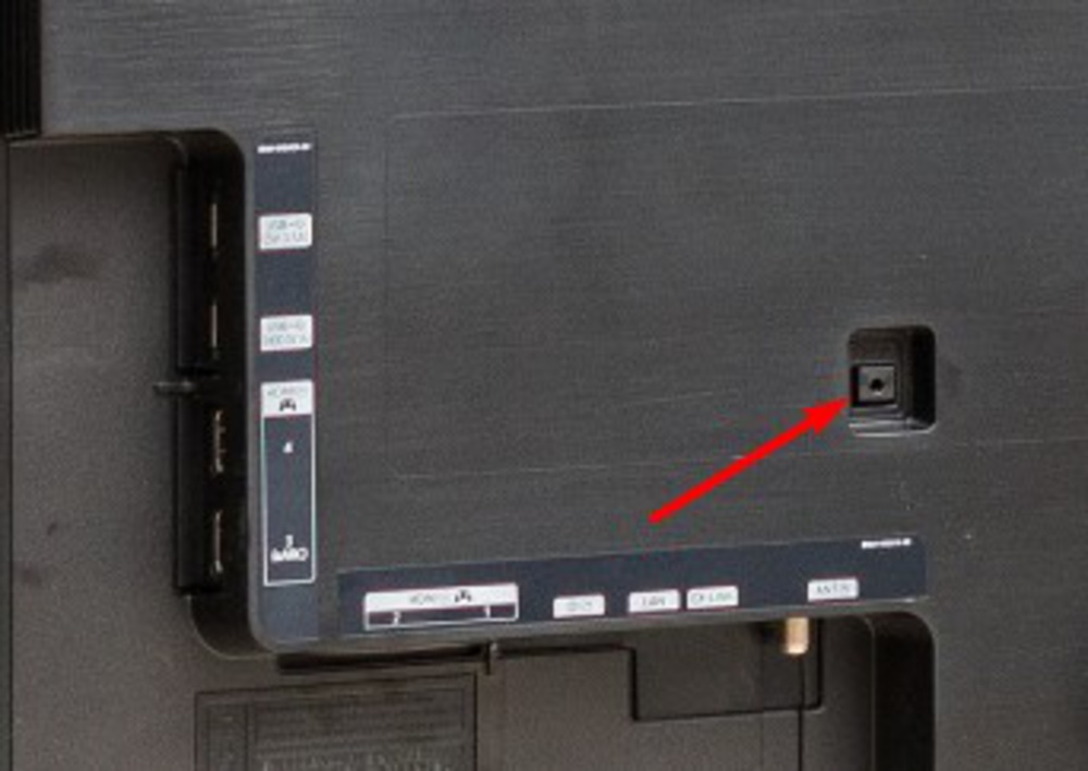 A single button is located at bottom right of the TV. You can use it to power the TV on/off, change channels, adjust the volume, and switch inputs. You can control the TV hands-free with your voice using the TV's built-in microphone, but you can also turn the microphone off using a small switch located on the bottom right of the TV.