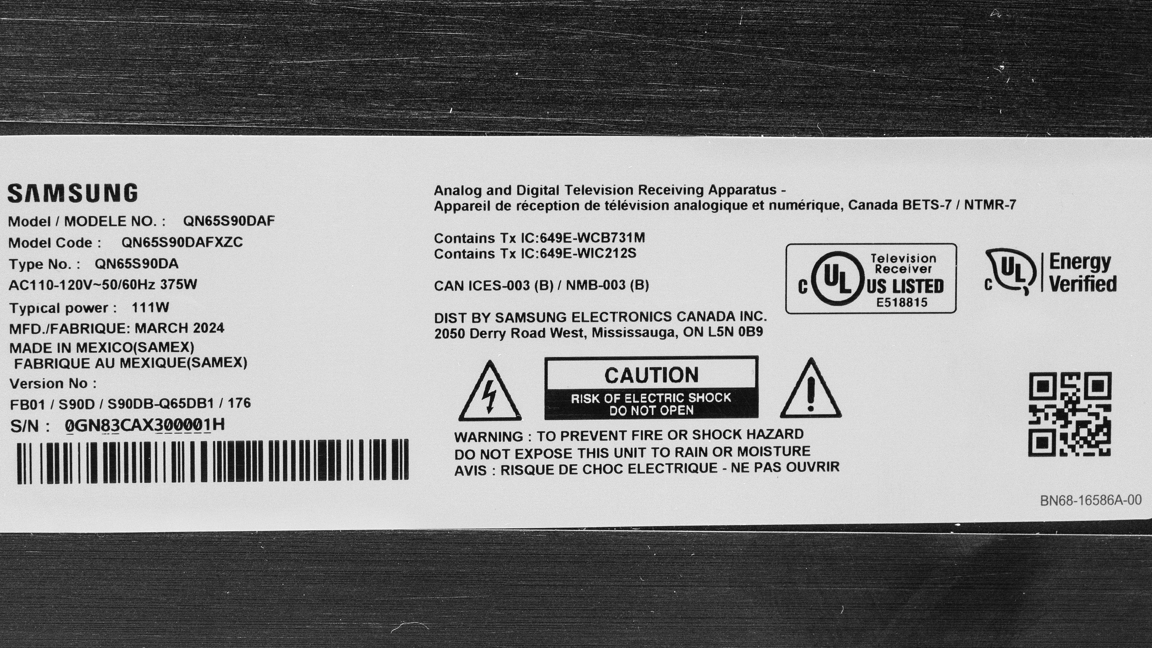 The TV is also sold as the Samsung S90DD at warehouse stores like Costco and Sam's Club with a longer warranty. There's also a Canadian variant known as the Samsung S92D. The S90DD and the S92D offer the same features, picture quality, and processing capabilities but have more powerful speakers (60W vs. 40W on the S90D). In Canada, the last digit of the model code in all sizes and variants of the S90D ends with 'C,' but there's no difference in performance.