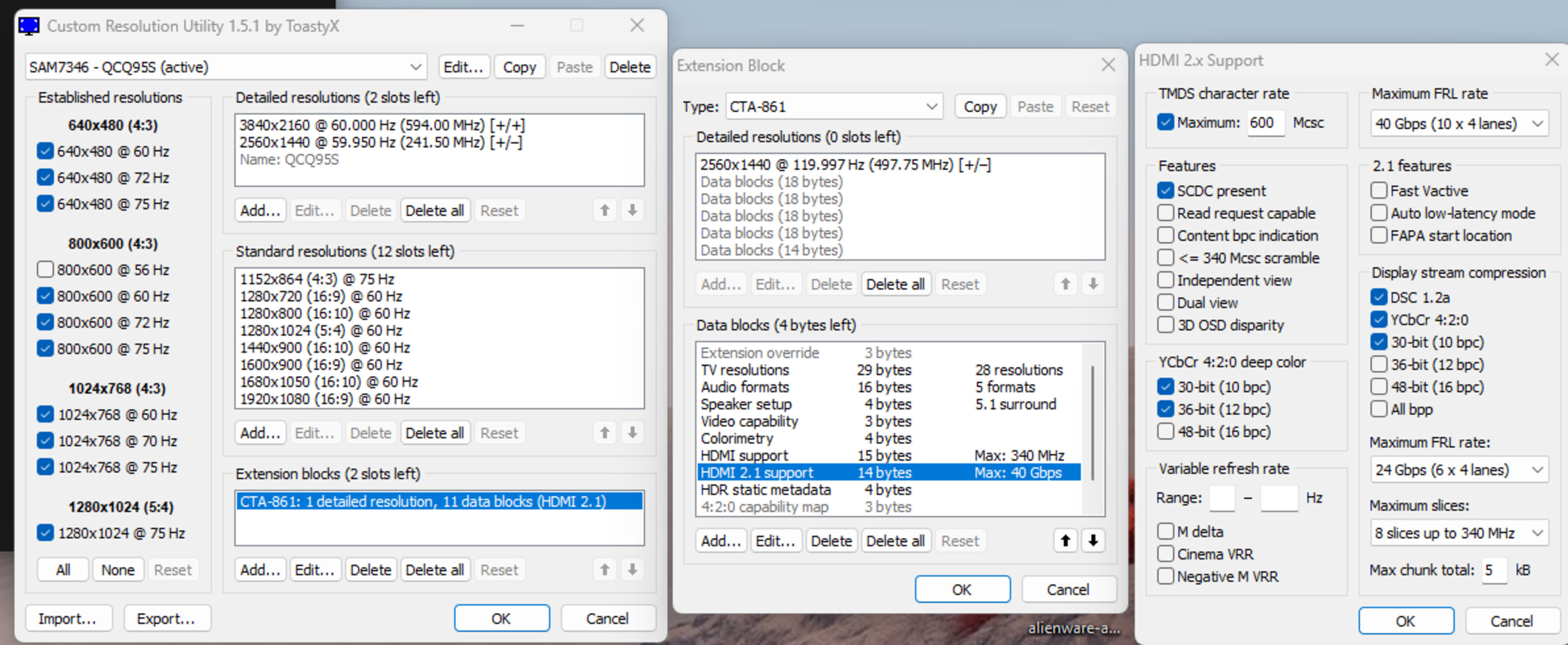 The Samsung S95C supports all common resolutions up to 4k @ 144Hz. Chroma 4:4:4 signals are displayed properly with all supported resolutions, which is important for text clarity. Unfortunately, even though it can display chroma 4:4:4 properly, text from a PC isn't clear due to the unusual subpixel structure (see the Pixels section of the review for more on this issue). 4k @ 120Hz signals are displayed properly, with no resolution-halving or other issues.