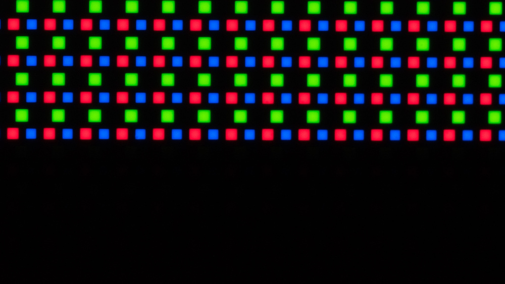 - Bottom edge of a white line - horizontal lines like this appear purple along the bottom, as the last line has only red and blue subpixels.