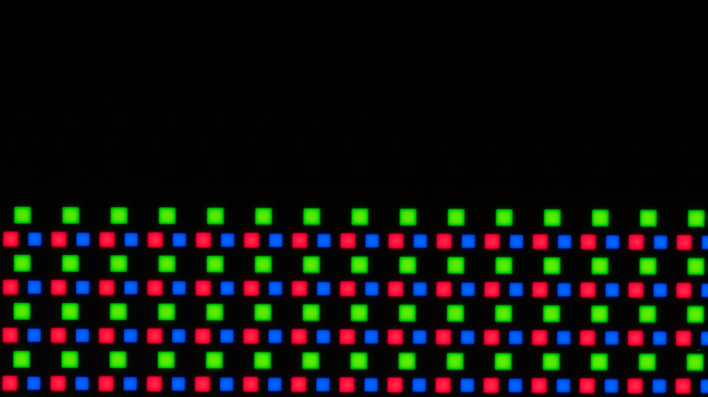 - Top edge of a white line - horizontal lines like this have a green fringe at the top, as the top-most line of subpixels are all green.