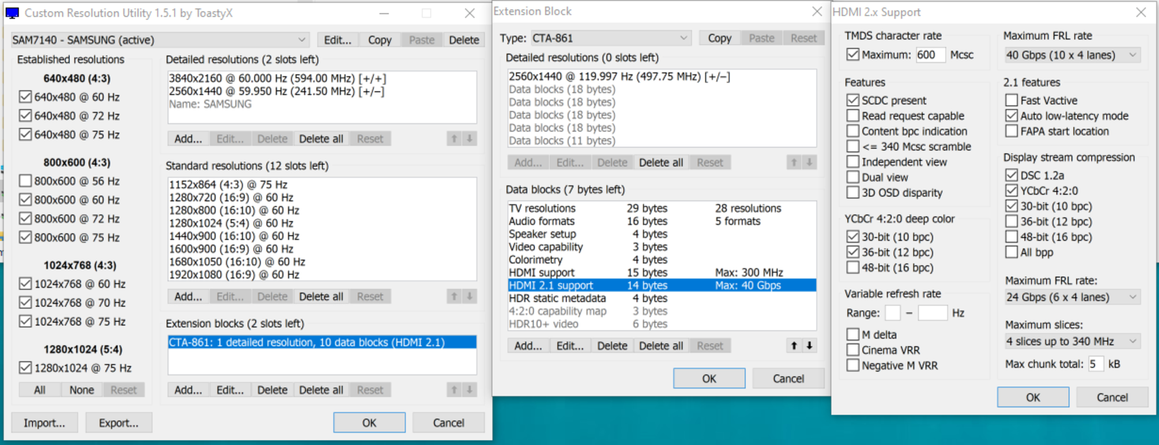 The Samsung The Frame TV supports most common resolutions. Except for 1440p @ 120Hz, chroma 4:4:4 is displayed properly in any other supported resolution, which is essential for clear text when using the TV as a PC monitor.