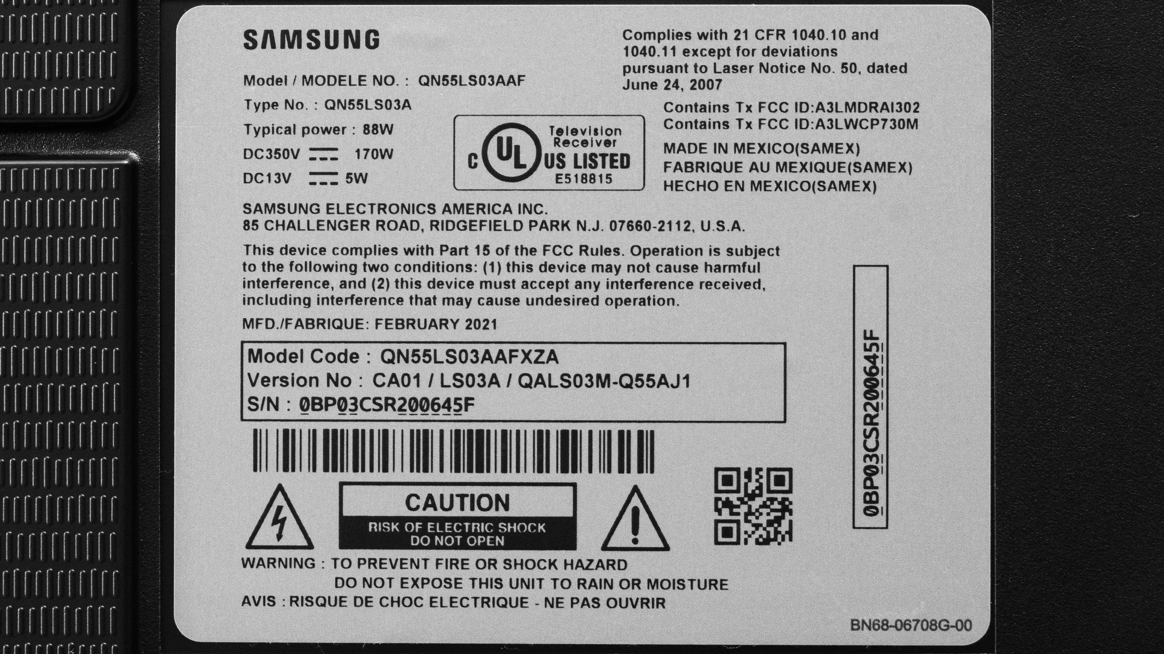 We tested the 55 inch Samsung The Frame 2021 (QN55LS03AAFXZA), and we expect the results to be valid for the 65 inch, 75 inch, and 85 inch models. The 43 inch and 50 inch models have a 60Hz refresh rate and don't support a variable refresh rate, but most of our results should still be valid for those sizes.