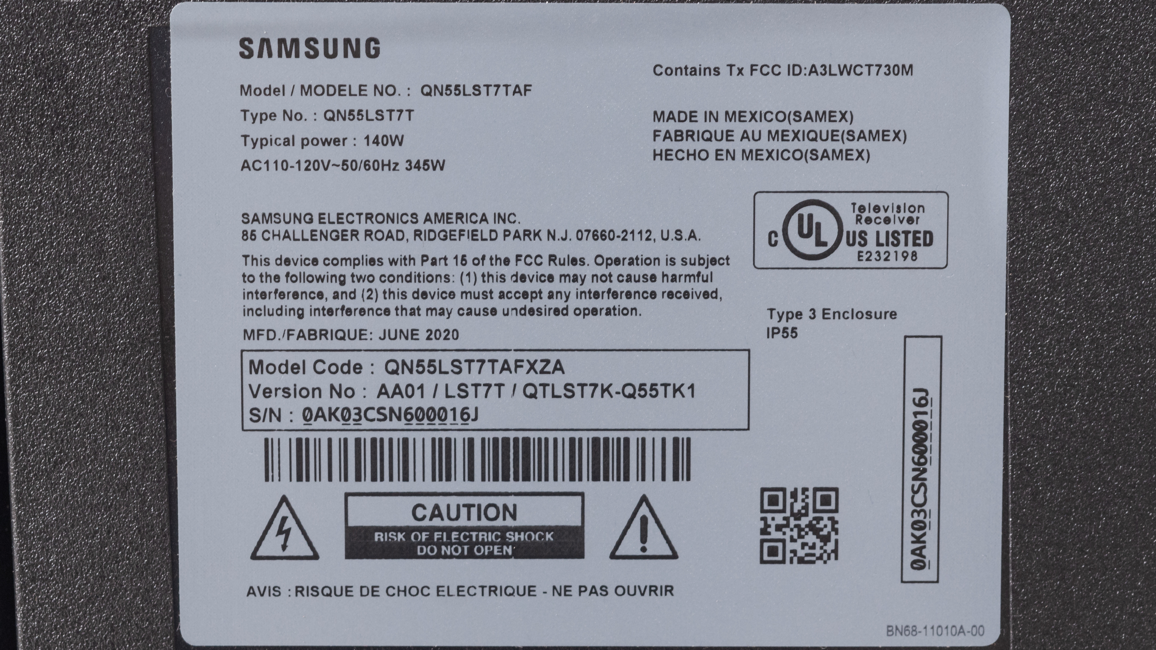 Our unit of the Samsung Terrace was manufactured in June 2020; you can see the label here.