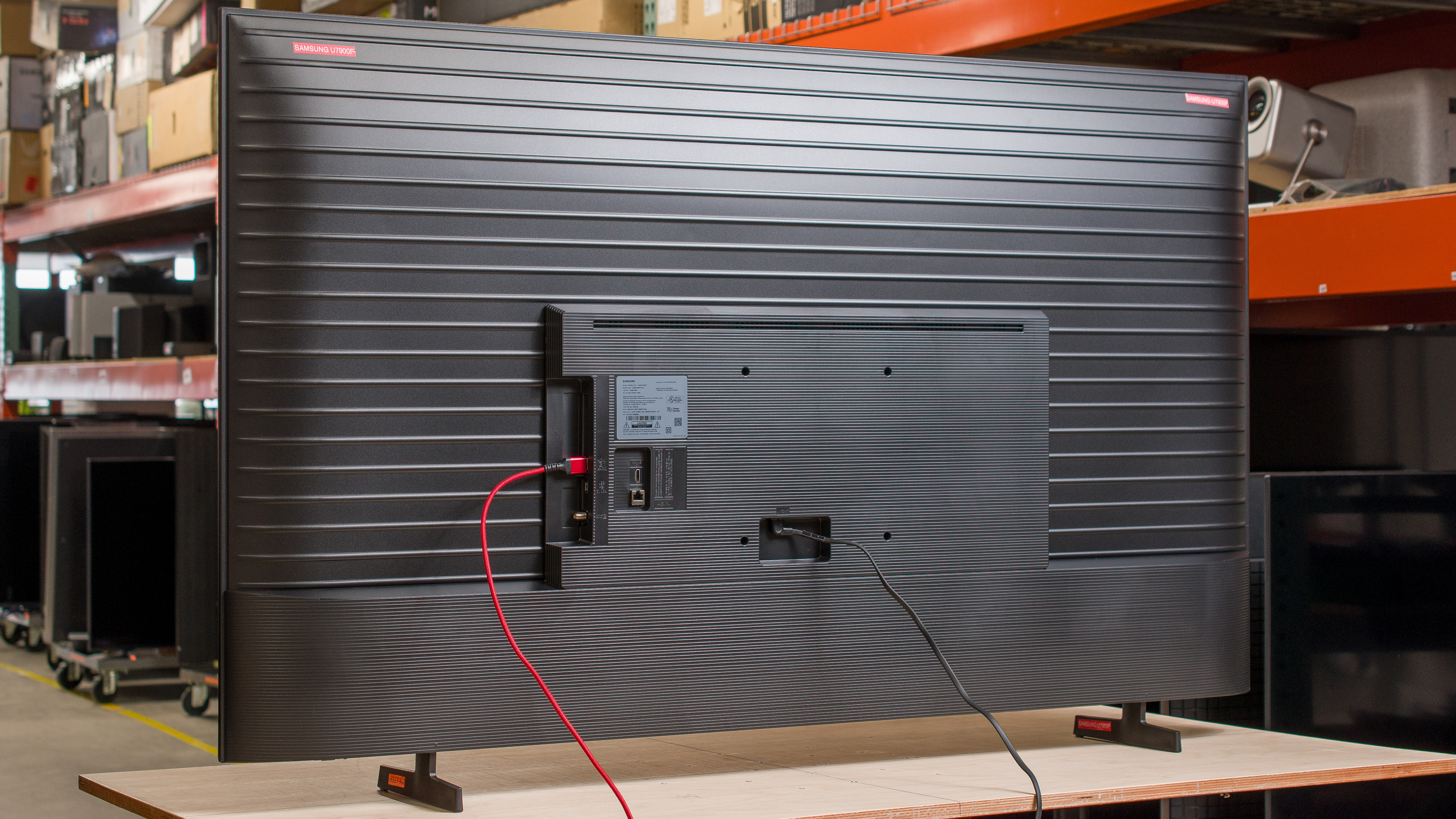 The Samsung U7900F has mediocre build quality. The back of the TV is made of cheap plastic and there's a lot of flex in the back panel.