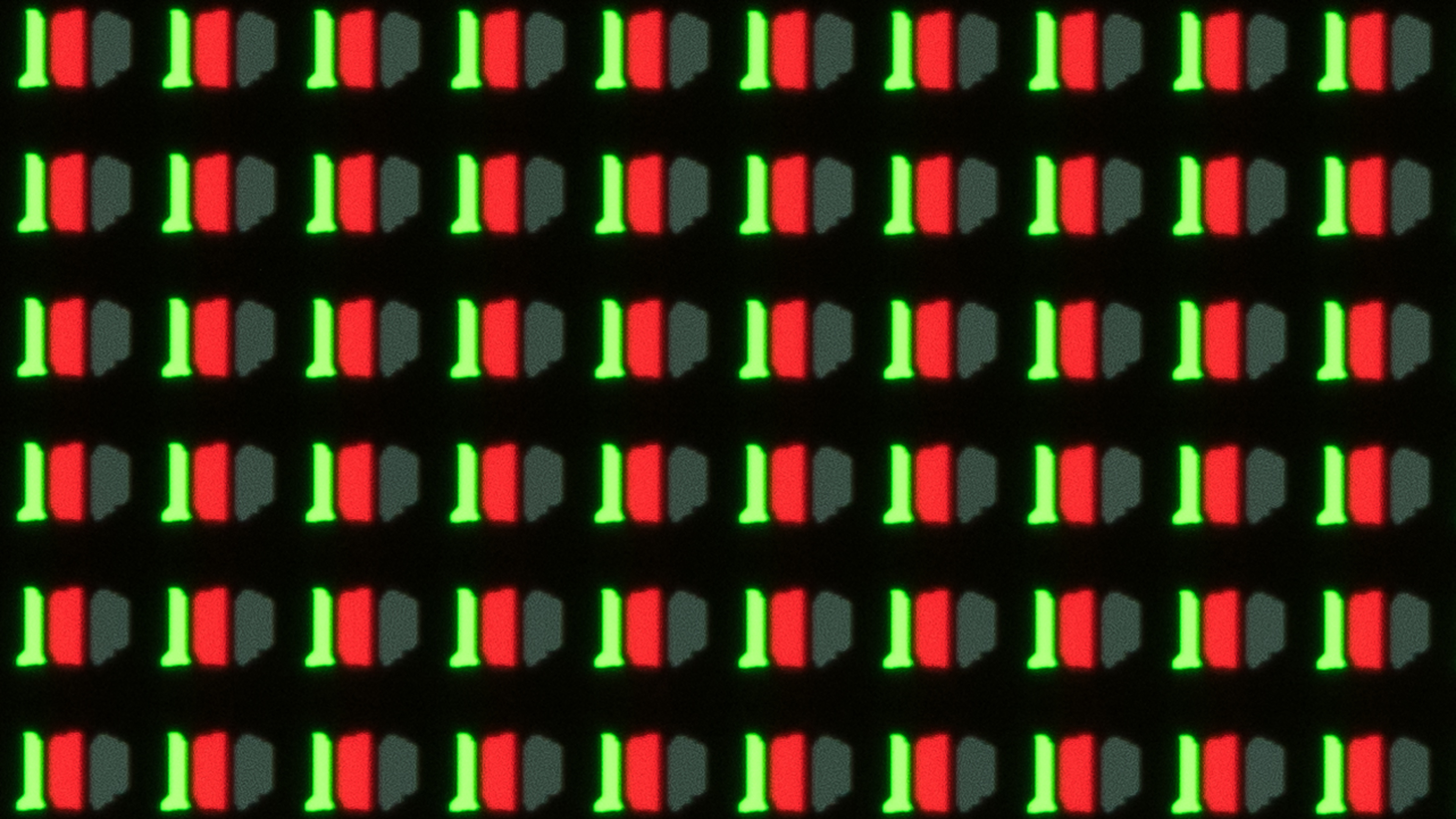 Like all other OLEDs, this TV uses a 4 sub-pixel structure, but all 4 sub-pixels are never on at the same time. This image shows the green, white, and blue sub-pixels. You can see the red sub-pixel in our alternative pixel photo.