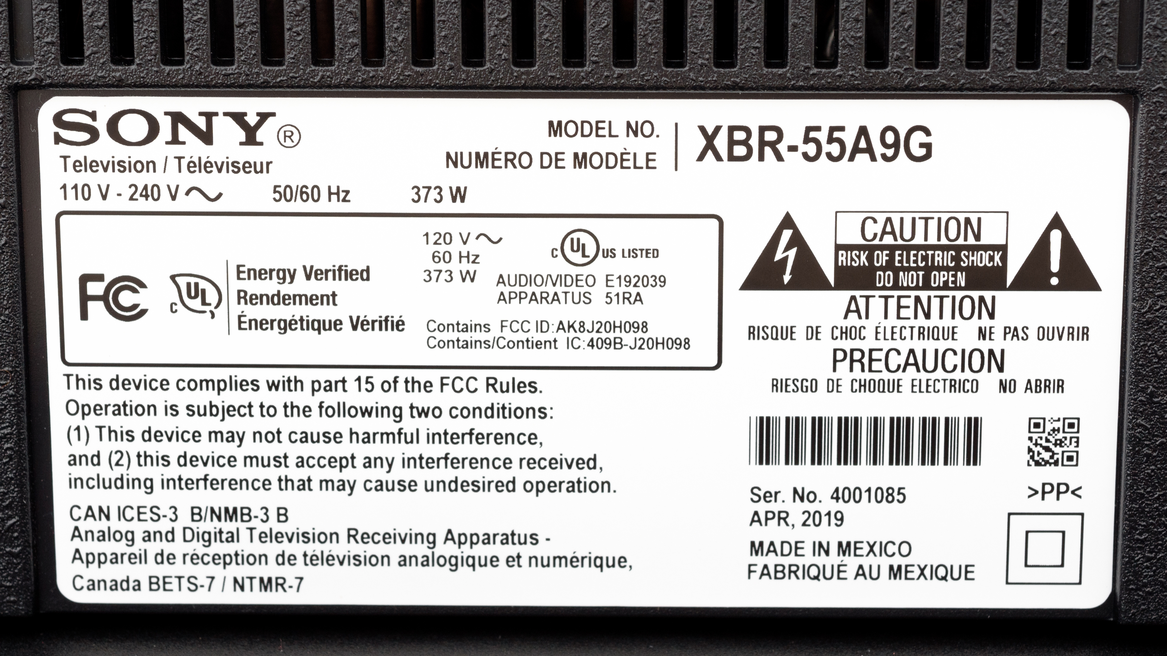The Sony A9G we reviewed was manufactured in April 2019.