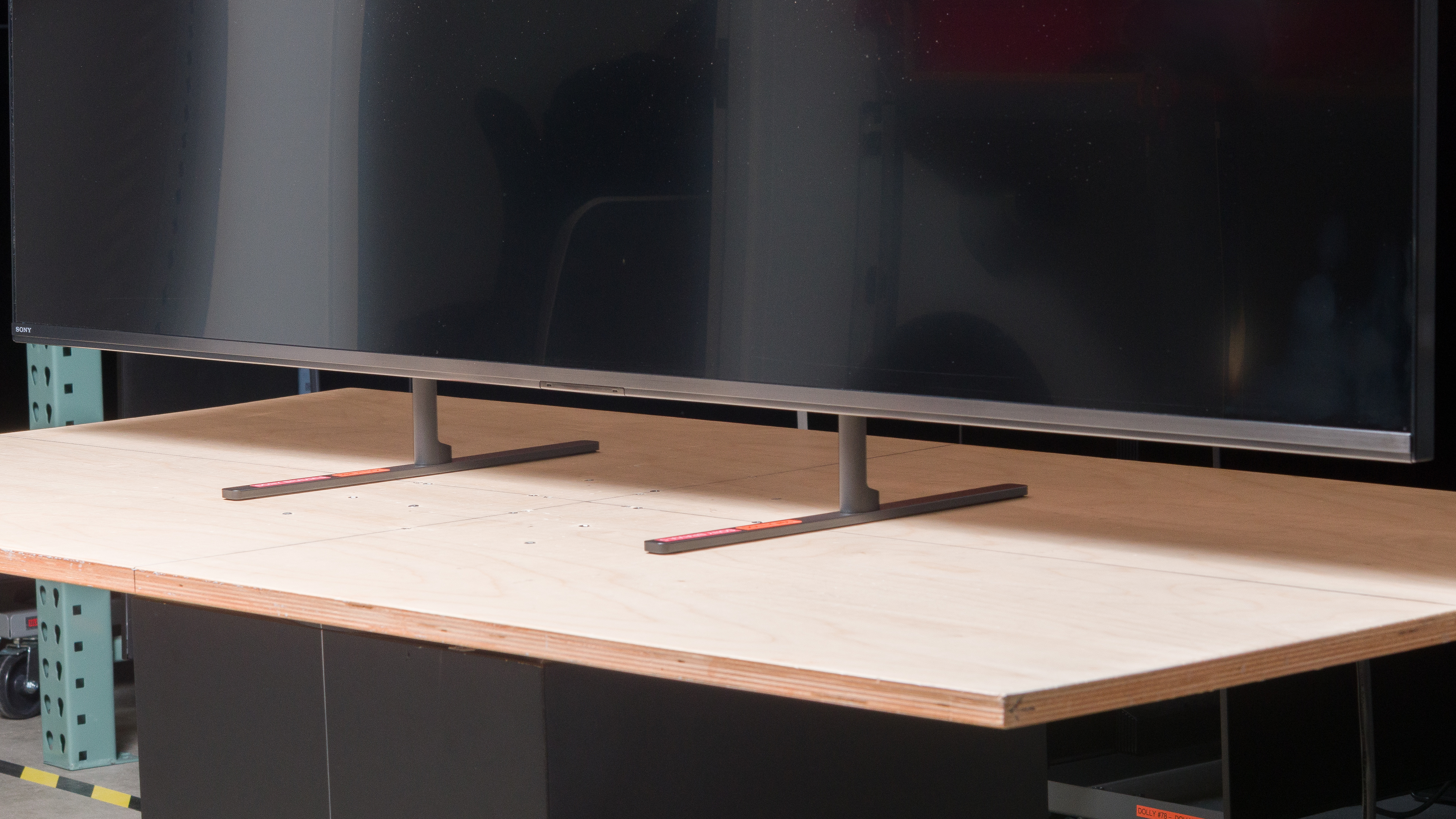 Like the Sony X90L/X90CL, the TV comes with two feet, but these ones are flat on the bottom. However, you can't widen the position of the feet like you can on the X90L and some other Sony models. You can adjust the height of the feet, though. The lower position (pictured above) gives you the best stability, but you can also raise the feet if you need to fit a soundbar underneath the TV.