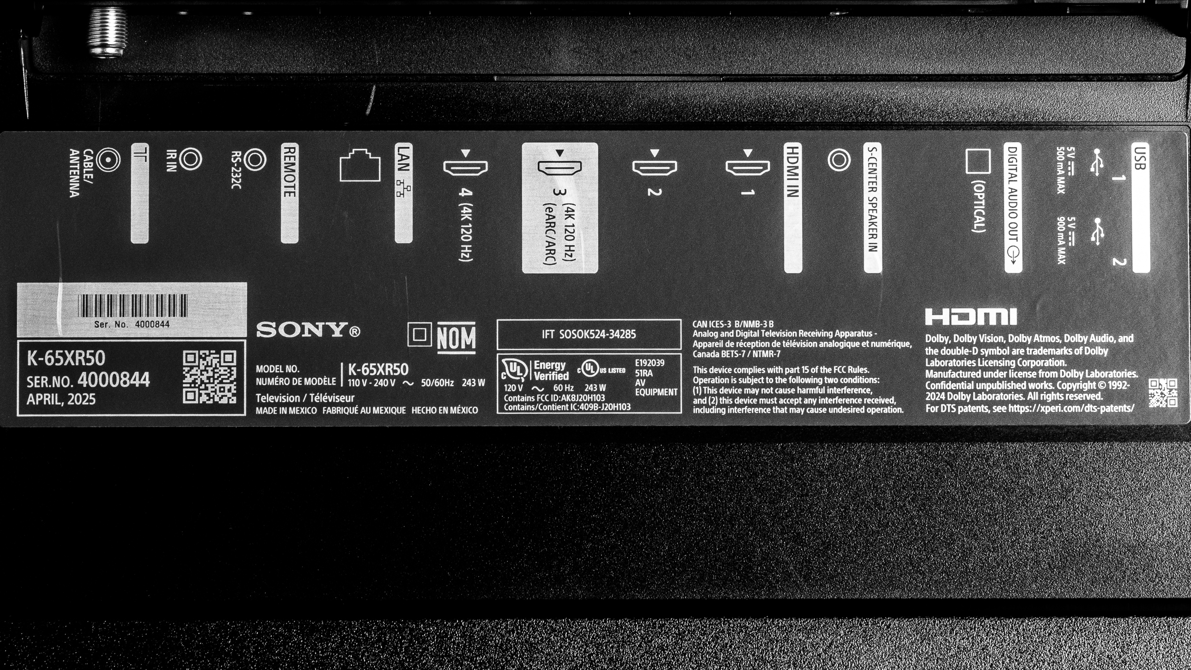 Like any modern Sony TV, the back has a checkerboard pattern. The inputs are on the left side of the TV in a recessed cutout, so even though they're still reachable when you have it wall-mounted, they're a bit hard to access. Unfortunately, there are no clips or grooves to help with cable management.