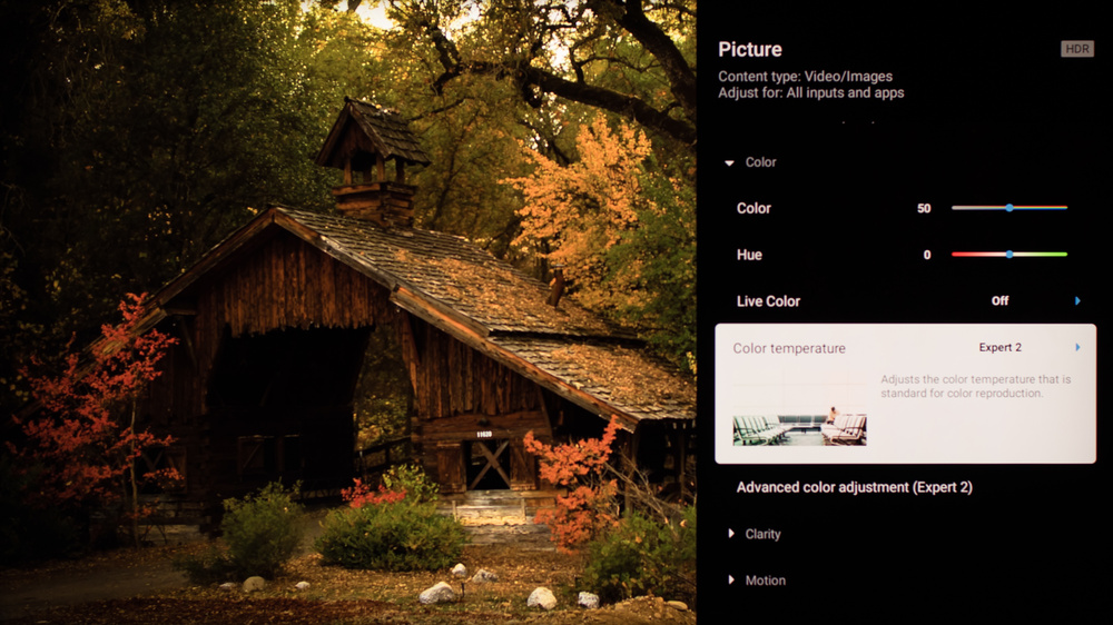 HDR is automatically enabled for native apps. When you start playing HDR content, a small HDR icon appears on the top of the screen. Once you start playing HDR content, some of the settings change automatically. Below are the settings we used for HDR10. All other settings were either disabled or left off. If you're having any issues with HDR content, make sure Input Signal Plus is enabled.