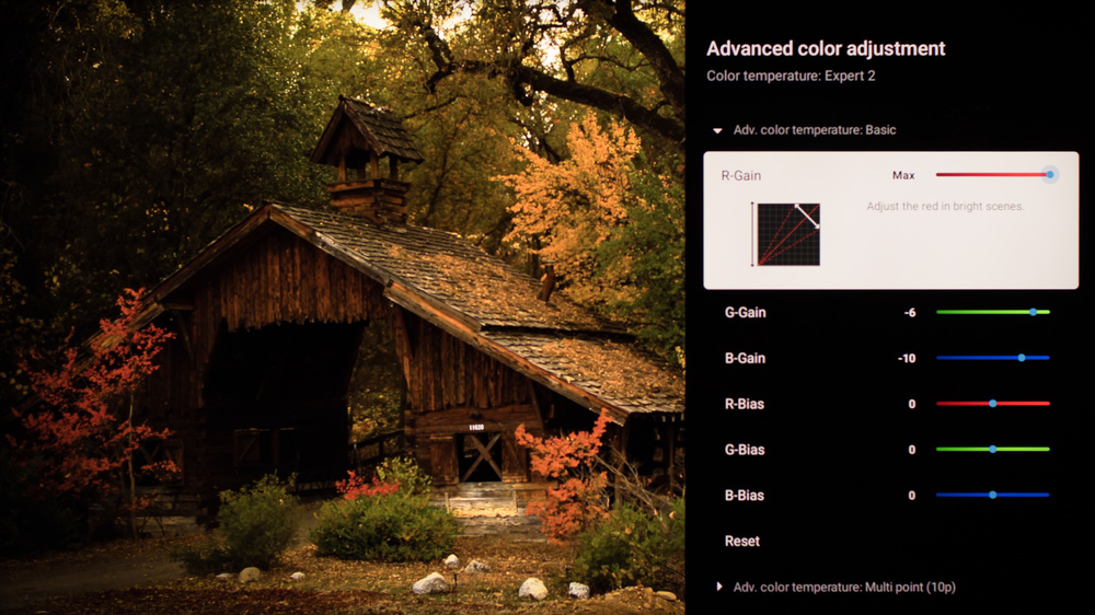 The following are the results of the white balance and colorspace calibration on our unit. They are provided for reference and should not be copied as the calibration values vary per individual unit, even for the same model and size as the TV we reviewed, due to manufacturing tolerances. If you want to try them, you will need to enter all values shown, as all of them are active at the same time. If you end up with worse picture quality, simply reset them to the default values.