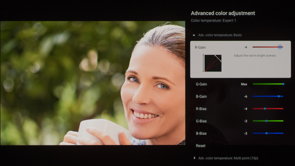 The following are the results of the white balance and colorspace calibration on our unit. They are provided for reference and should not be copied as the calibration values vary per individual unit, even for the same model and size as the TV we reviewed, due to manufacturing tolerances. If you want to try them, you will need to enter all values shown, as all of them are active at the same time. If you end up with worse picture quality, simply reset them to the default values.
