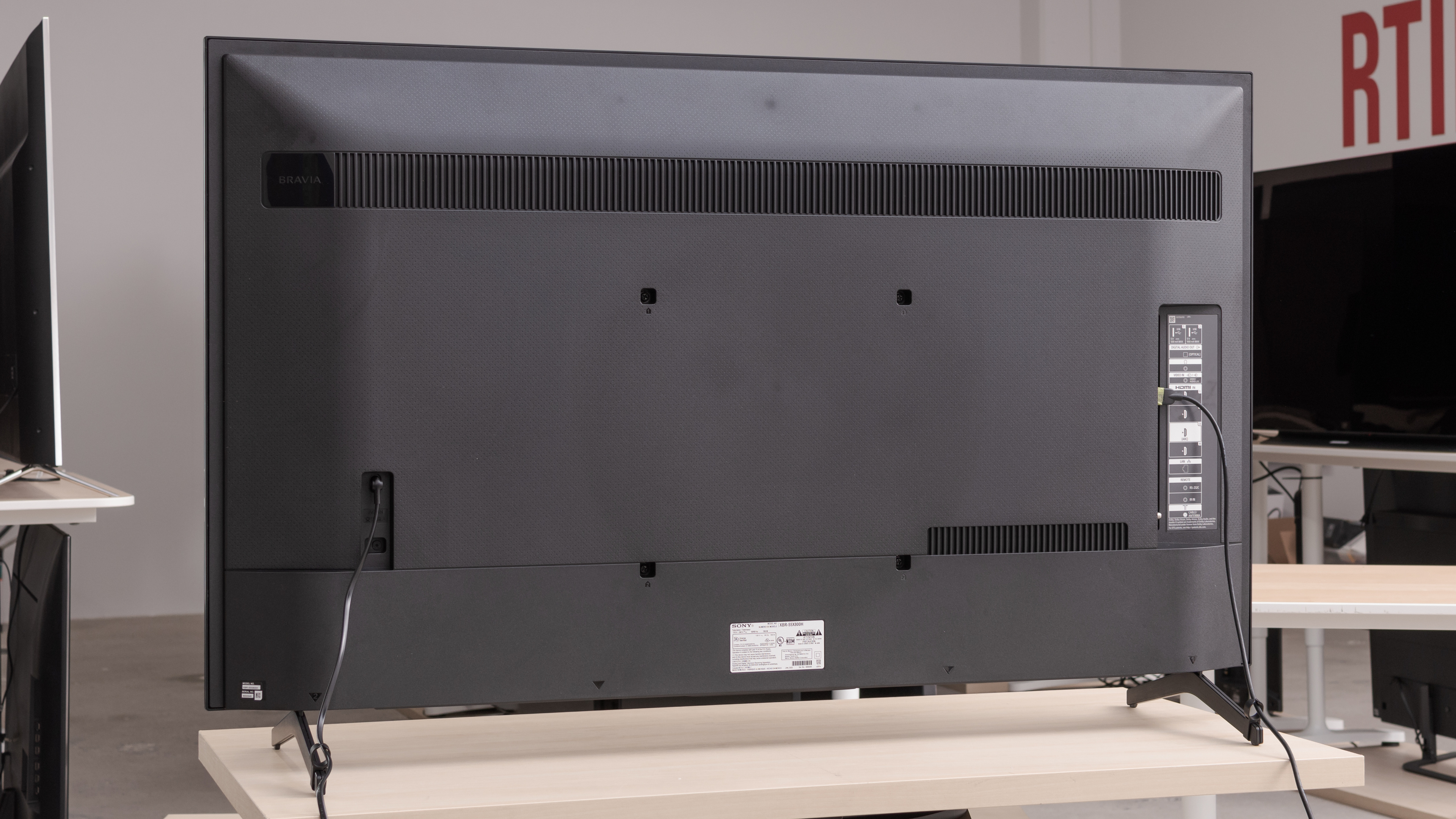 The Sony X800H has a similar design to its predecessor, the Sony X800G, but the cable management isn't as good. Instead of cables running through the feet, like with previous Sony TVs, there are two hooks to attach the cables with. It's thinner than the X800G, and the stand is wider, so there's more space to put a larger soundbar. The feet are made out of plastic, and the stand holds the X800H well. Also, there's a large and noticeable grate across the back of the TV for heat dispersion.