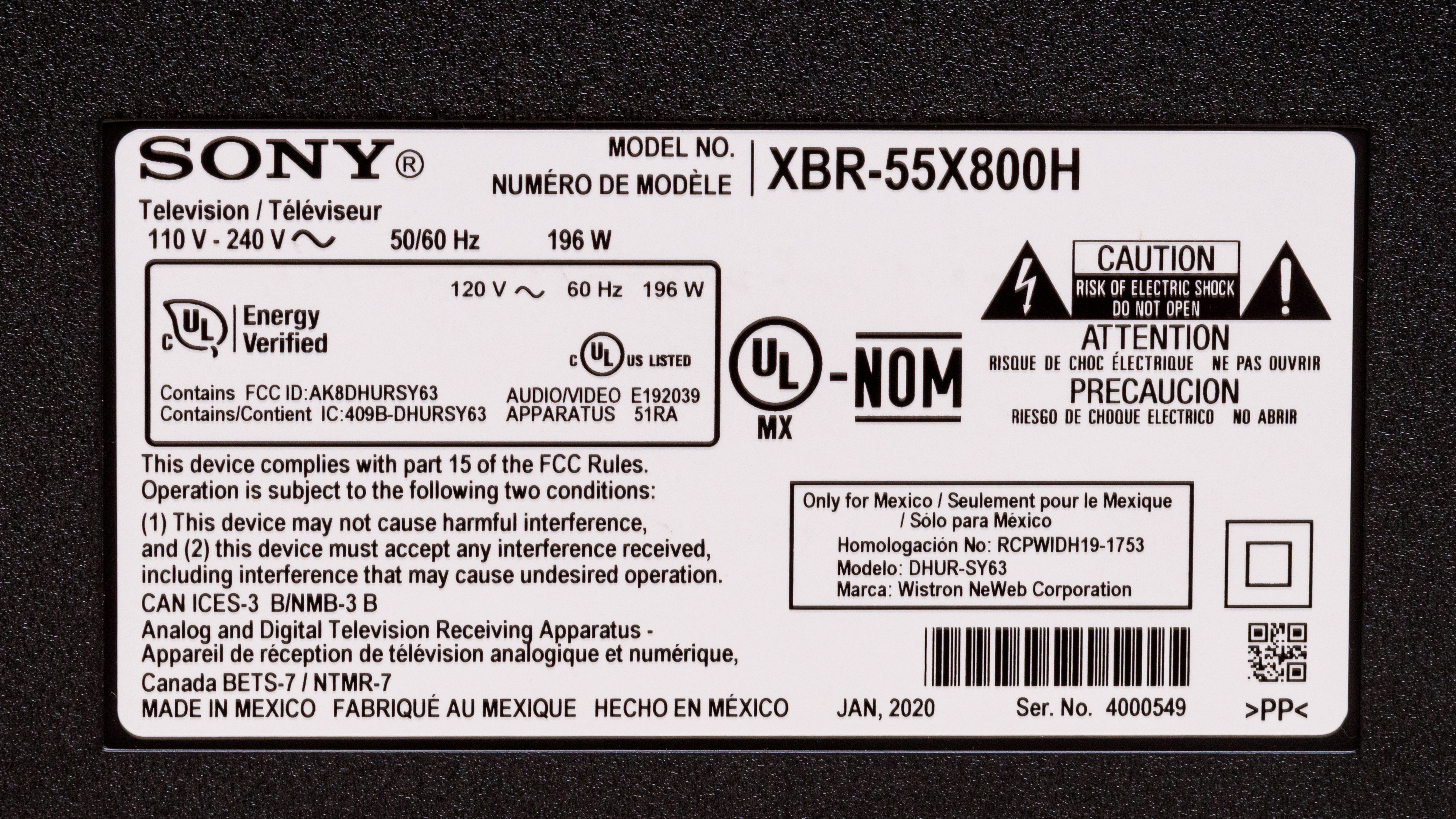 Our unit of the Sony X800H was manufactured in January 2020; you can see the label here.