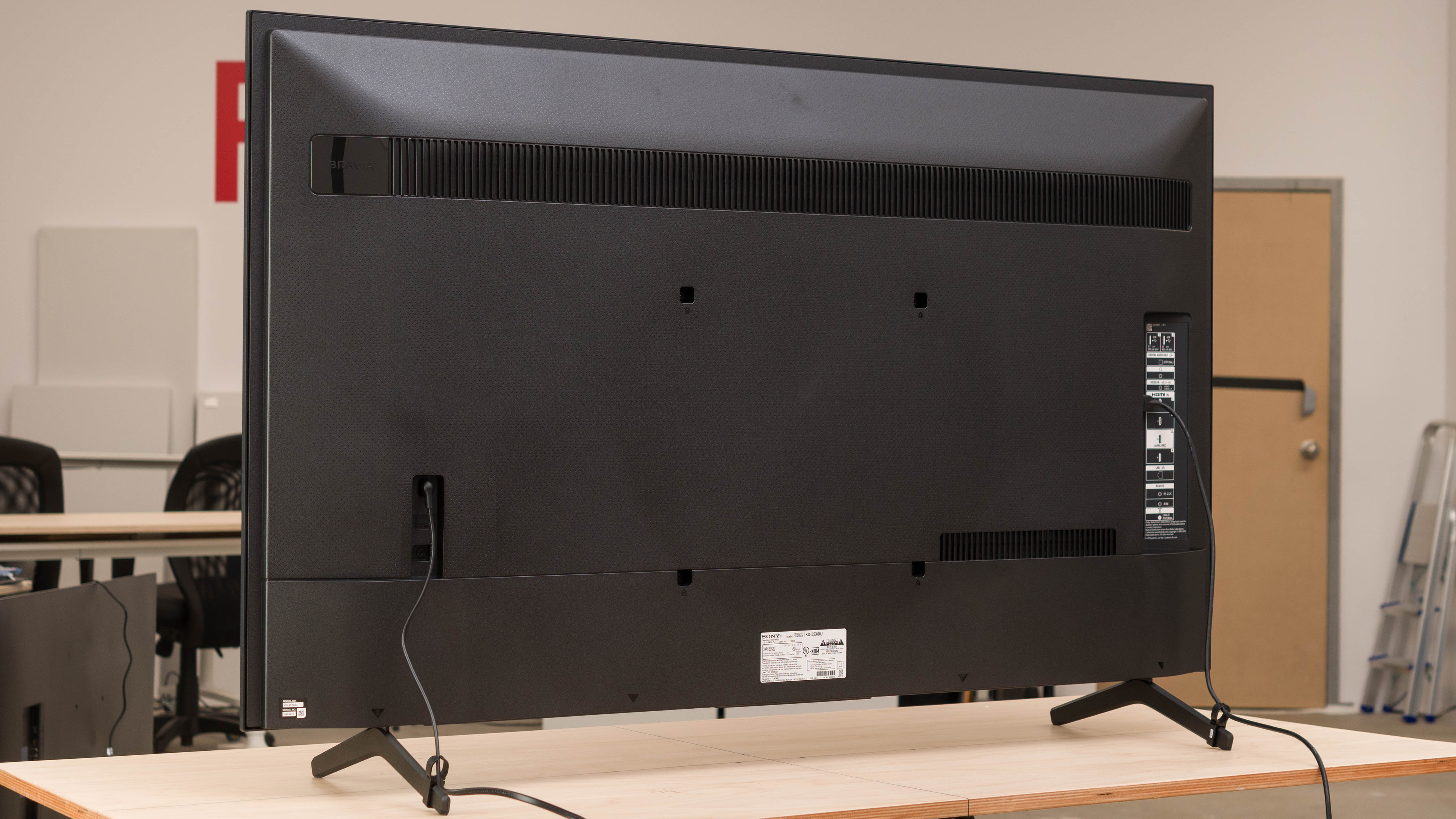 The Sony X80J feels decently built. The TV is made entirely of plastic and is relatively lightweight, but it's not as sturdy as higher-end TVs. There's quite a bit of flex all around the backside as well as around the borders. Our unit appears to have a defect on the bottom left side of the screen; you can see two small white squares where the panel meets the border. However, we expect this is an issue with our unit only and doesn't affect scoring.