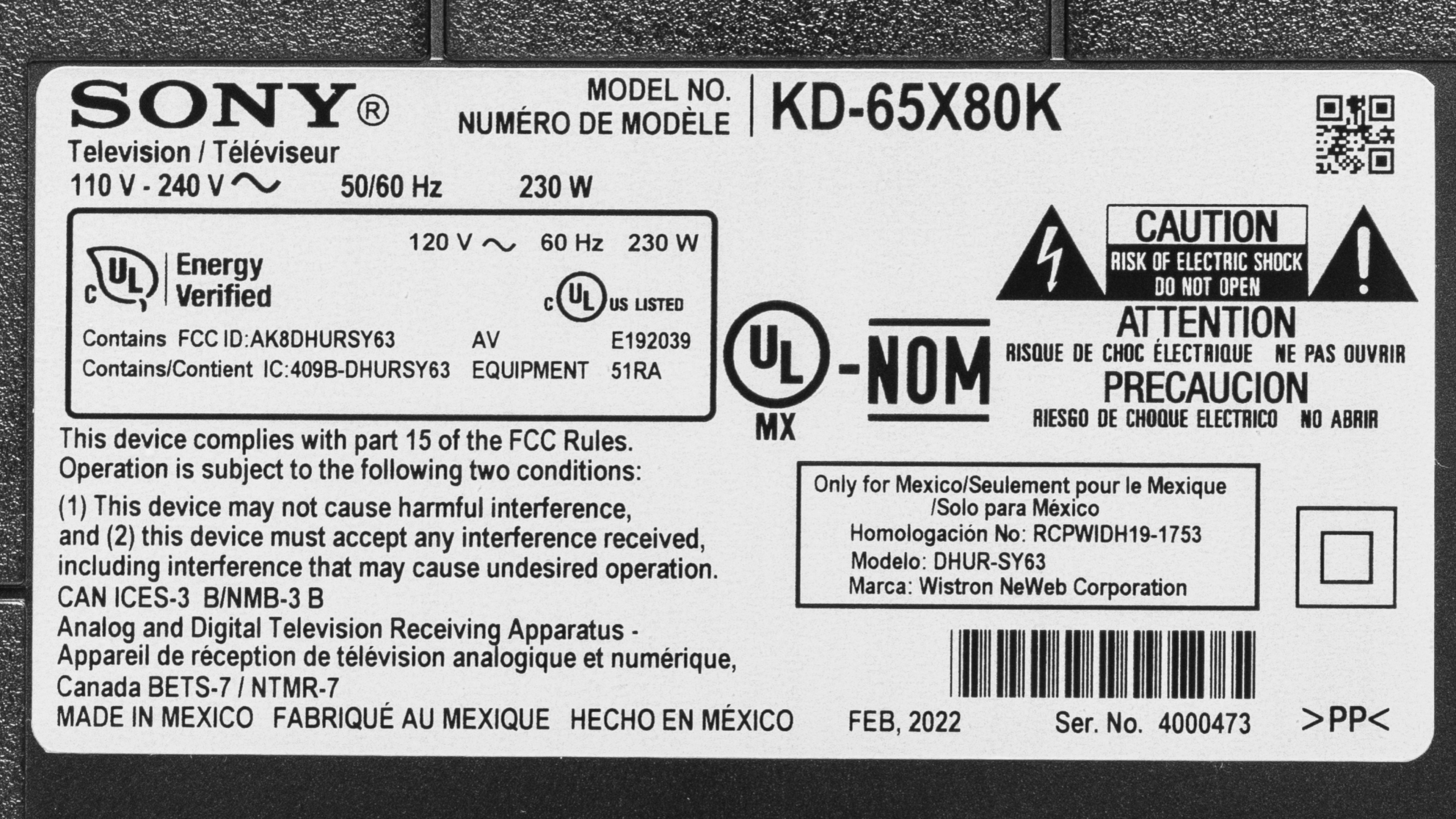 | 50" | KD-50X80K | Unknown | ||