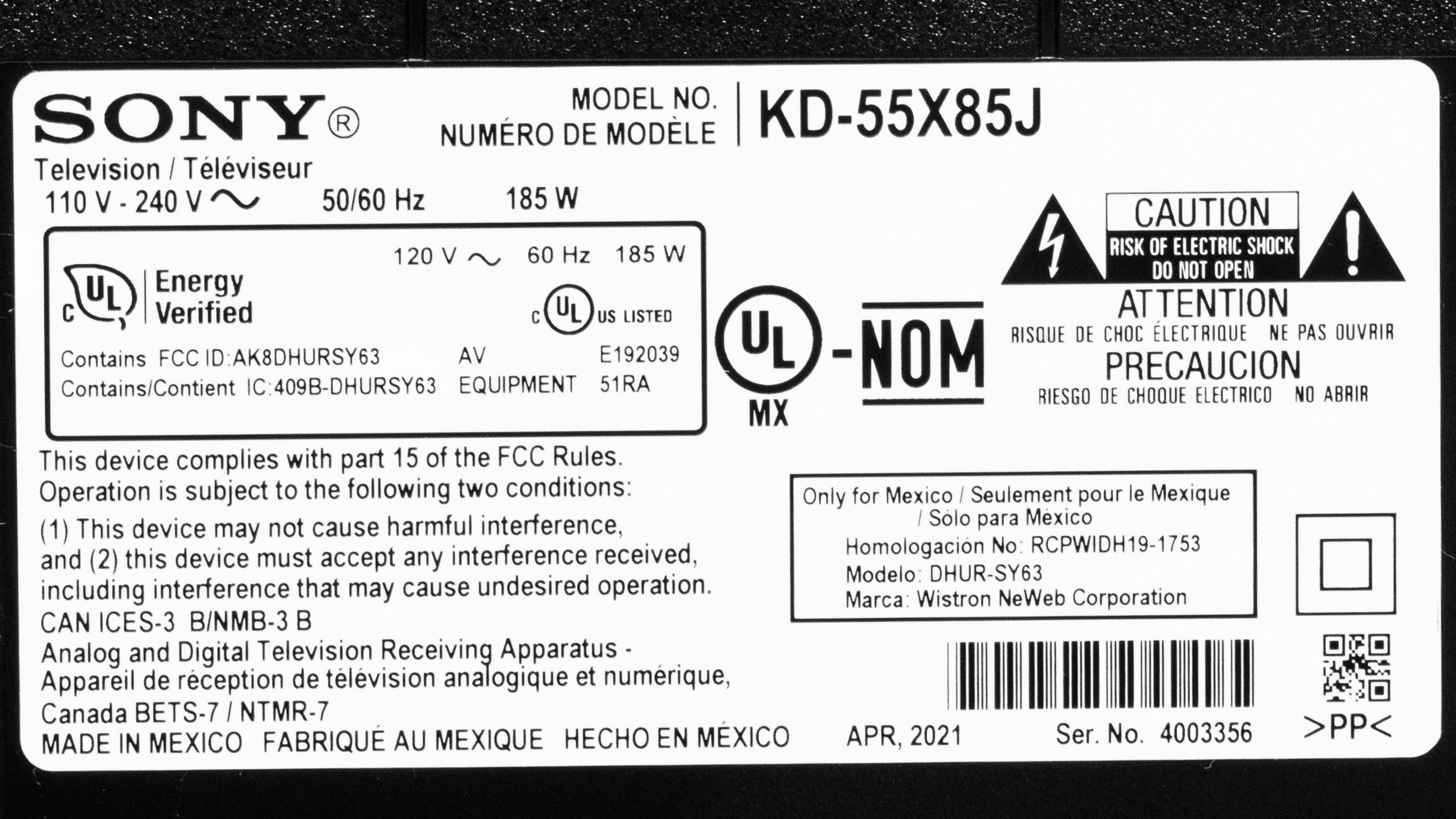 The Sony X85J is also available as the X89J in some regions. We expect our results to be valid for it as well; the only difference is that the X89J has an adjustable stand.