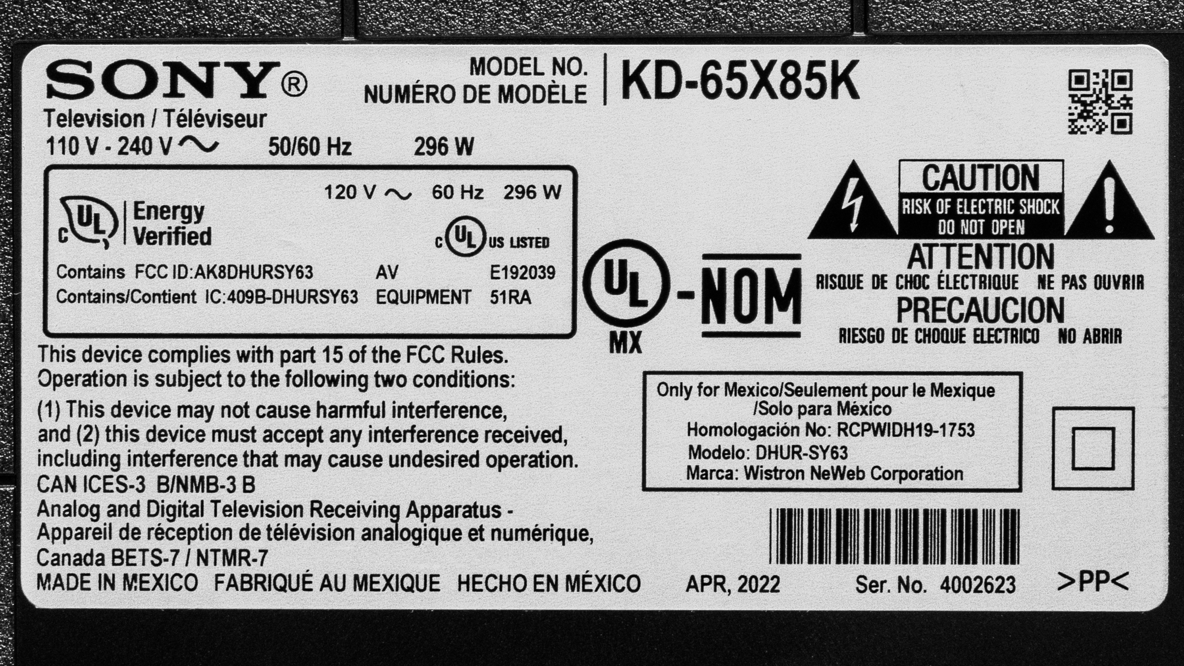 We bought and tested the 65-inch Sony X85K, and the results are also valid for all the sizes listed below. The only differences are that the 43 and 50-inch models have a slightly different design compared to the larger sizes, with feet that are set closer to each other. The European X85K is equivalent to the North American version, and there's also an X89K model in Europe that performs the same but has a mic built into the TV. The 55-inch and larger European variants also have an alternate stand position where you can put the feet closer together for smaller tables.