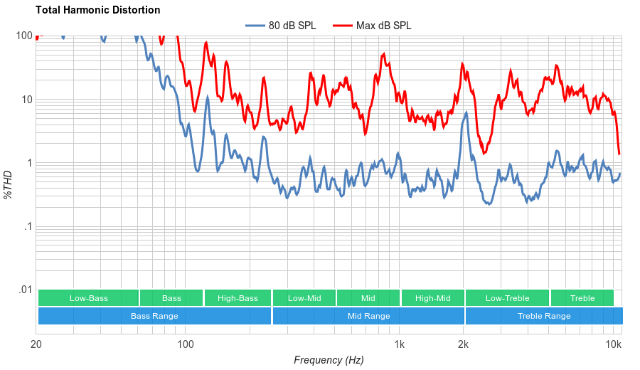 Poor harmonic distortion performance. The overall amount of distortion at 70dB is very low, however, just like most of the other Sony TVs we've measured, there is a big spike in the overall harmonic distortion as volume is increased and the TV is put under heavier loads.