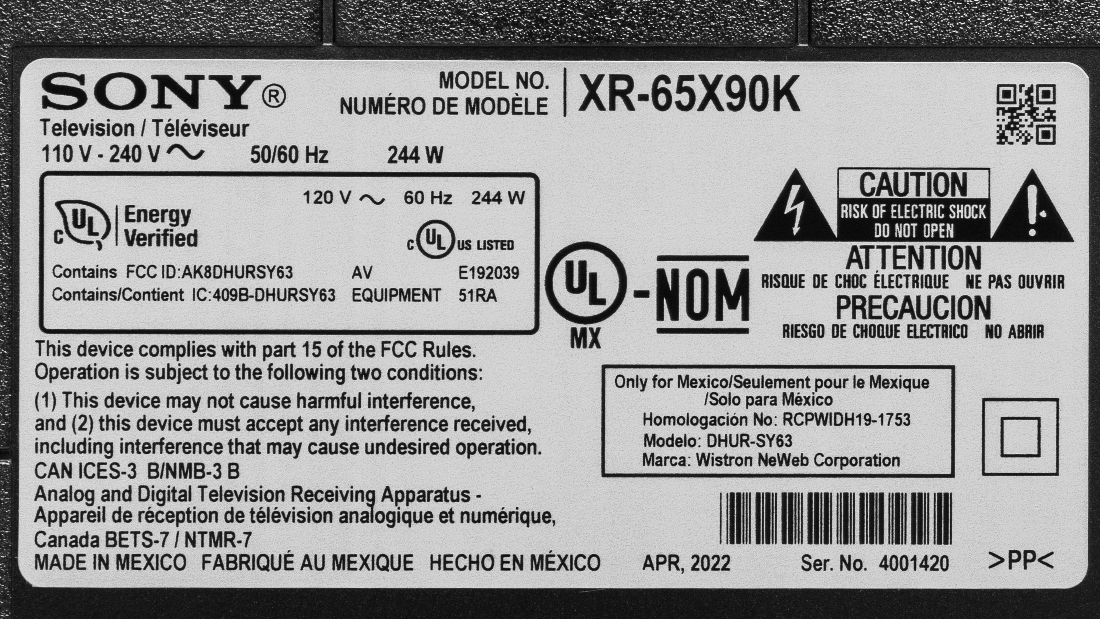 | 75" | XR-75X90K | - | X-Balanced Speaker |