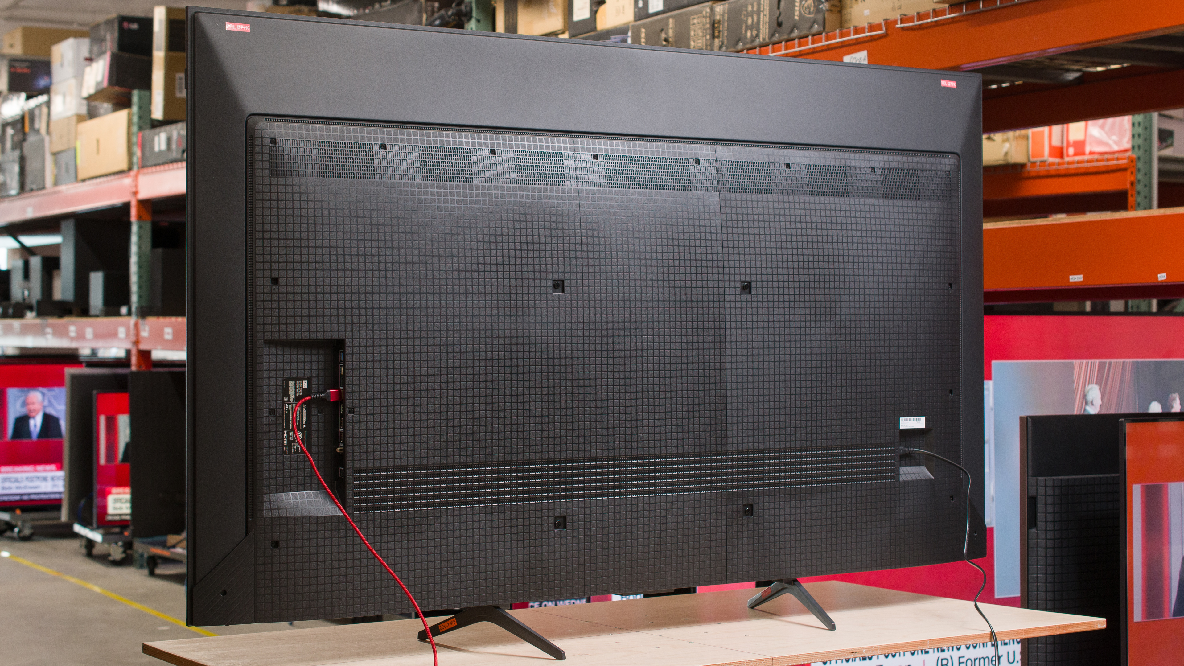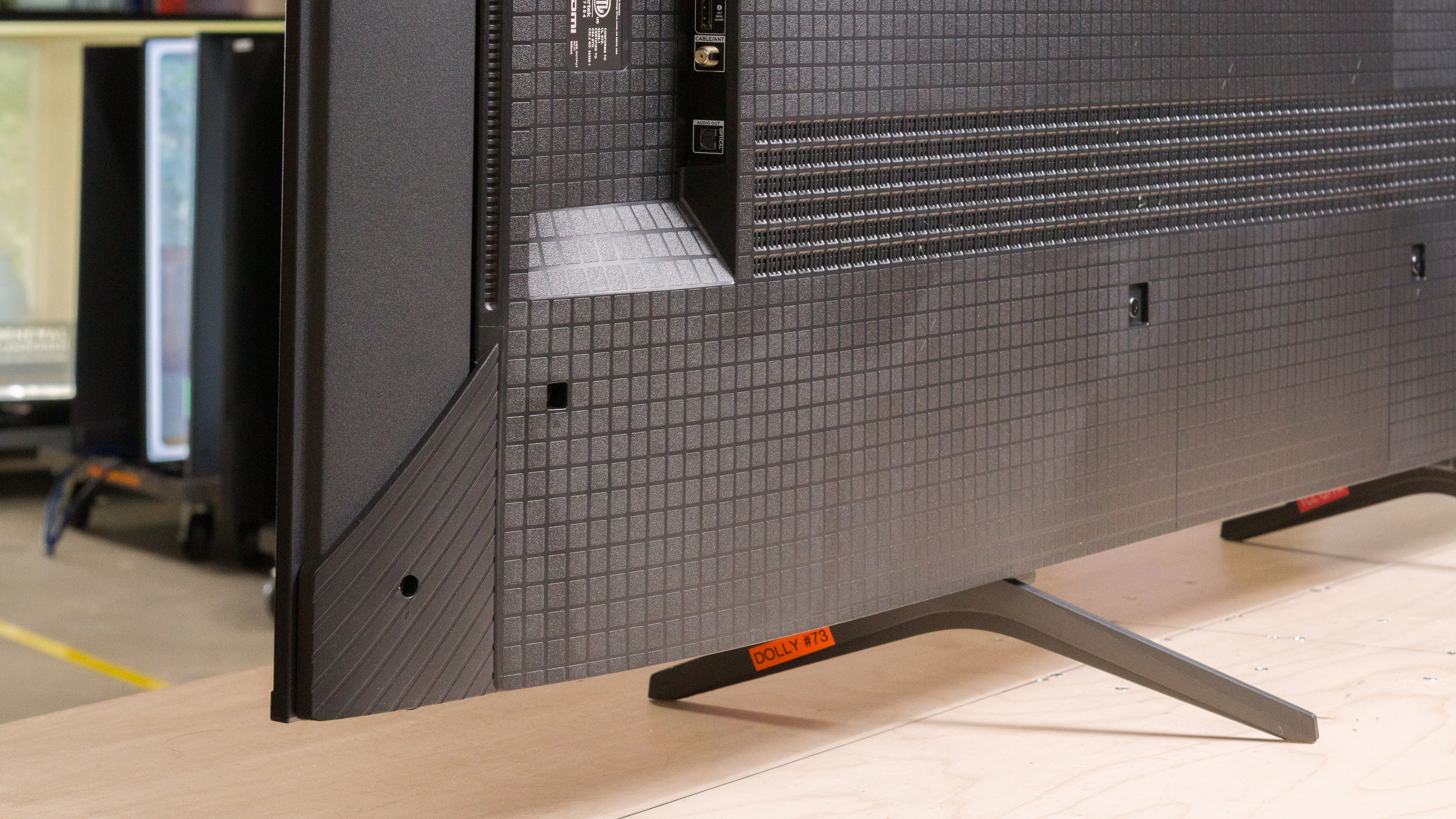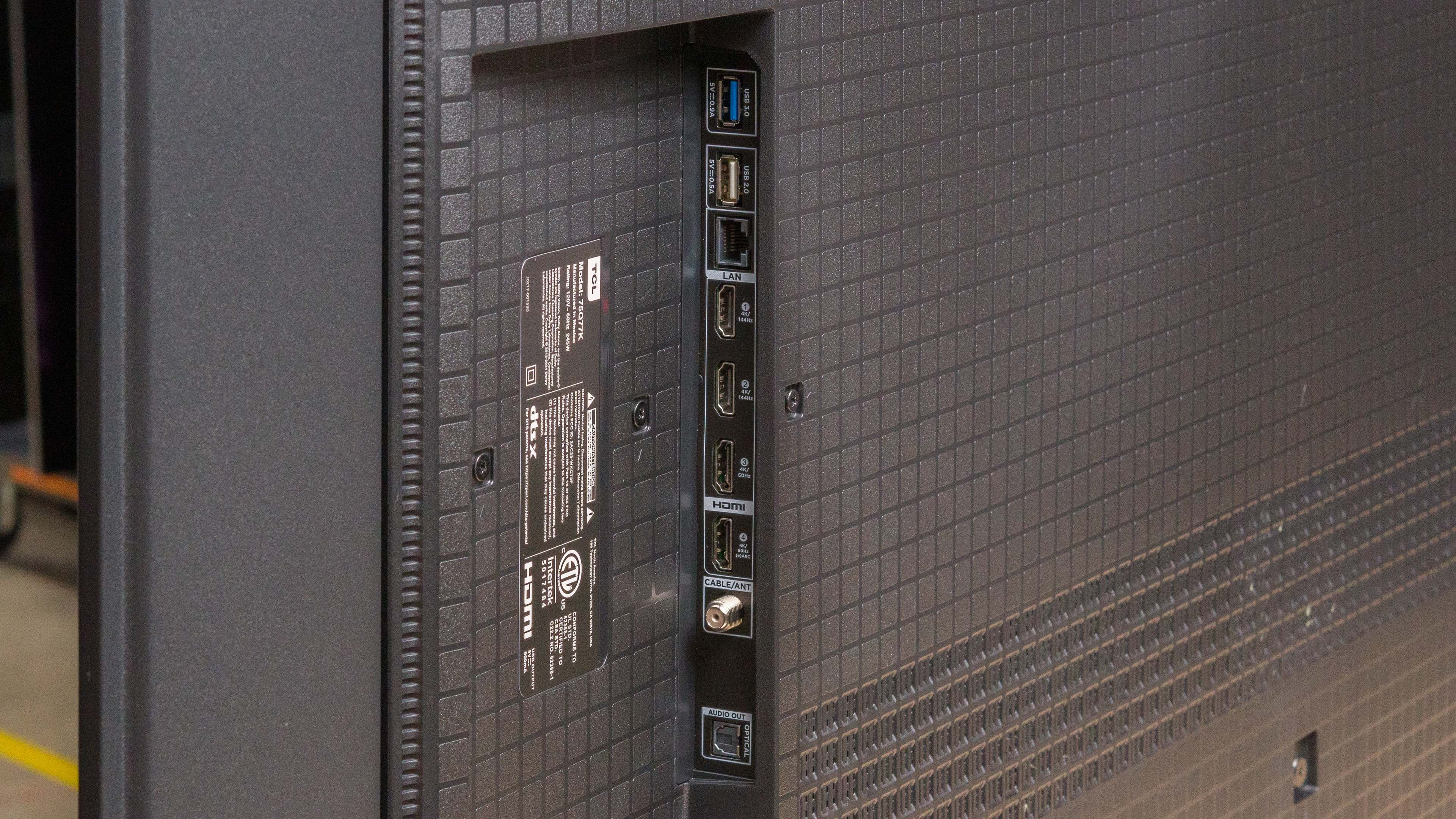 The back of the TV has a more premium design than most similarly priced models. The inputs all face to the right, but they're set into the TV so they can be a bit tough to reach when it's wall-mounted. There's plenty of space for the connectors, though, and you won't need any HDMI extensions or angle adapters. There's nothing to help with cable management.