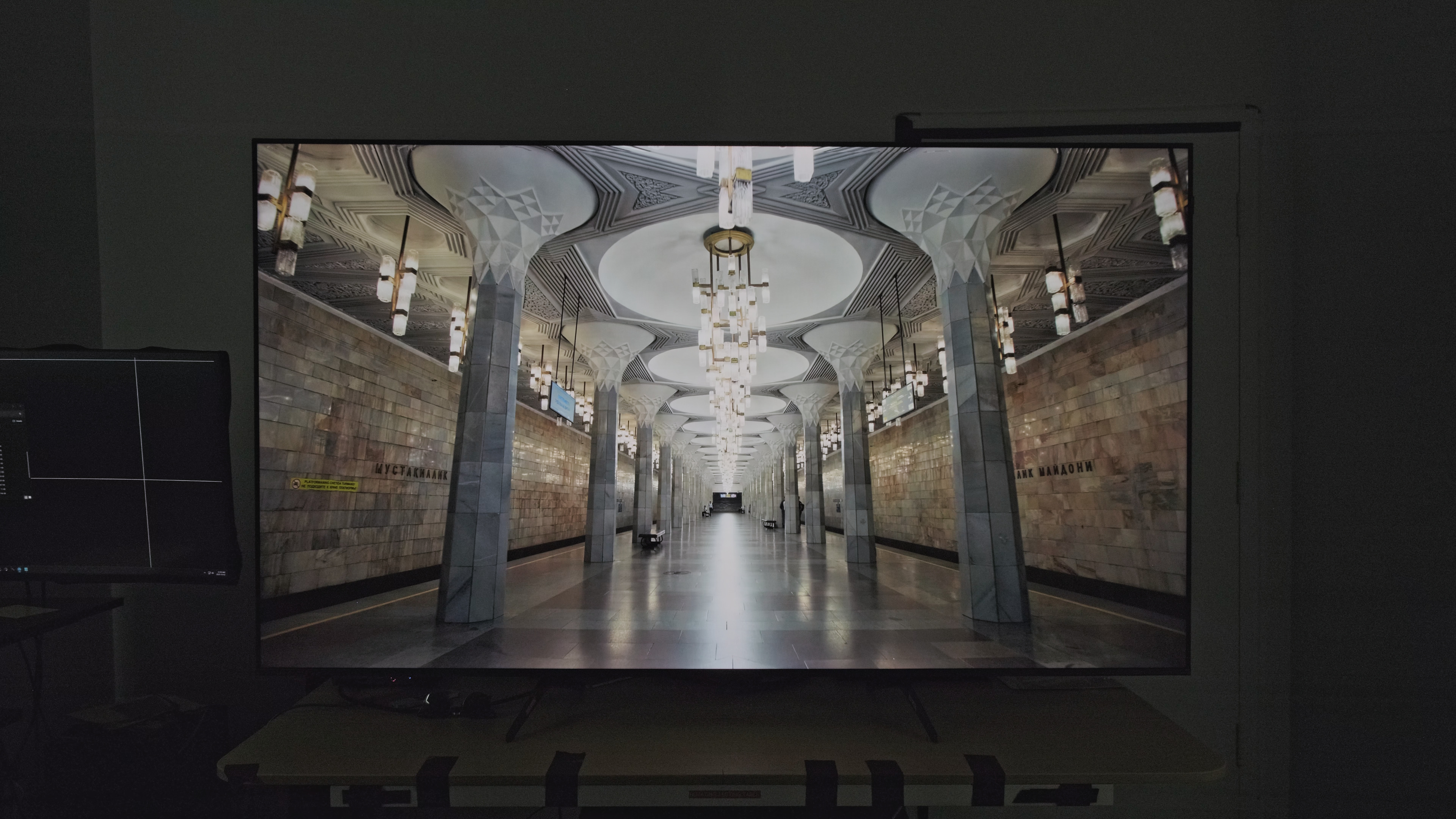This TV has poor contrast. While it's better than similar models like the Hisense QD7N or the LG UA77, which use ADS panels, it's still not very good. There's no local dimming feature, so even though the native contrast is decent, blacks are raised and appear washed out. The TCL QM5K delivers much better black levels thanks to its Mini LED local dimming feature.