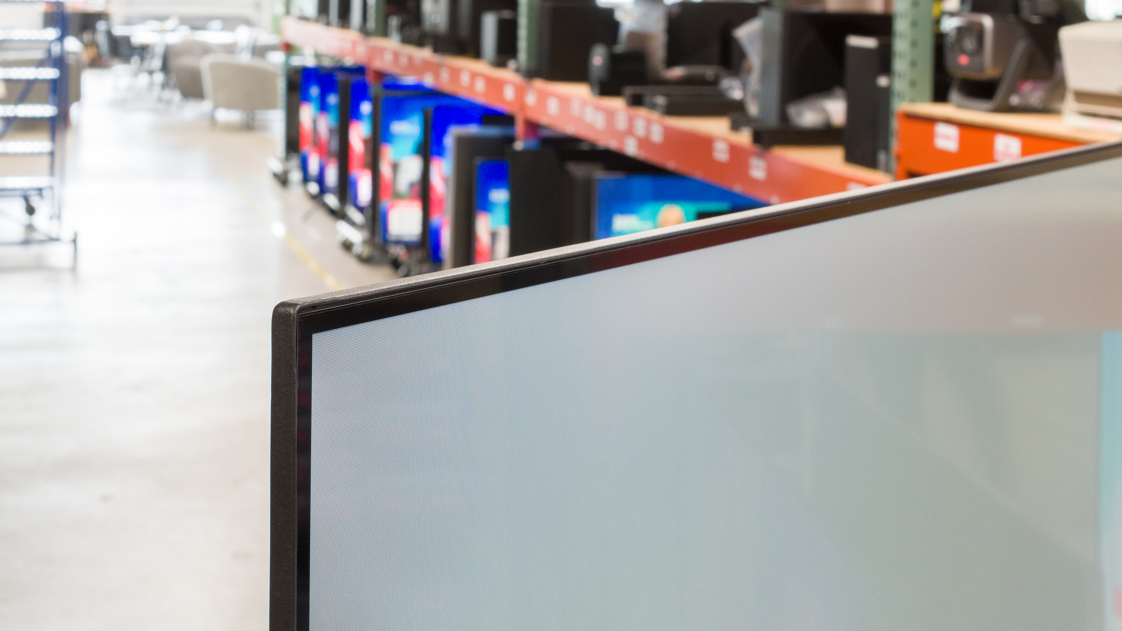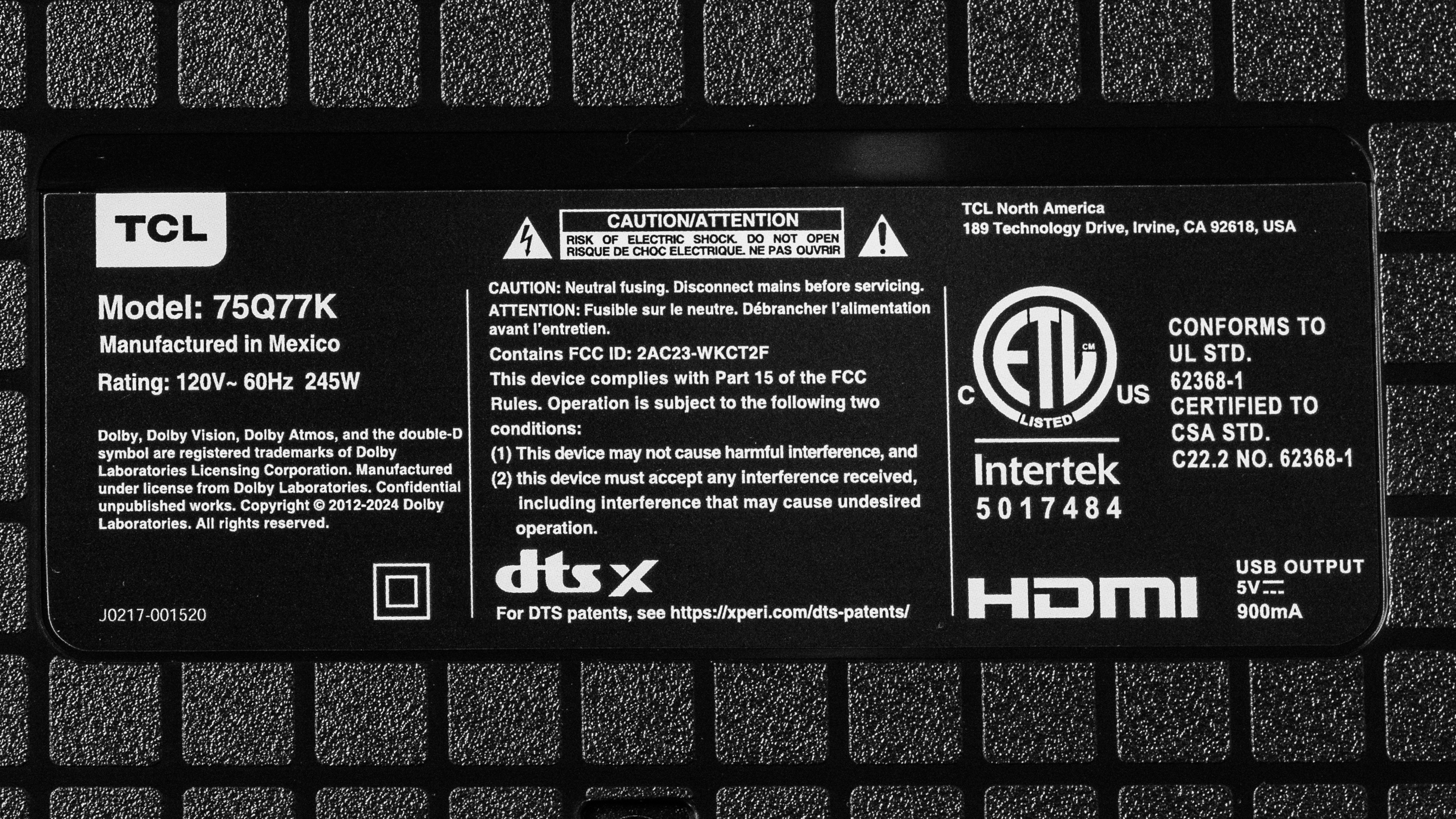 The TCL Q77K has okay build quality. It's mostly made of cheap plastic, but there's no obvious issue with its overall construction. There's a noticeable pinch on the panel, though, which you can see on the gray uniformity photo.