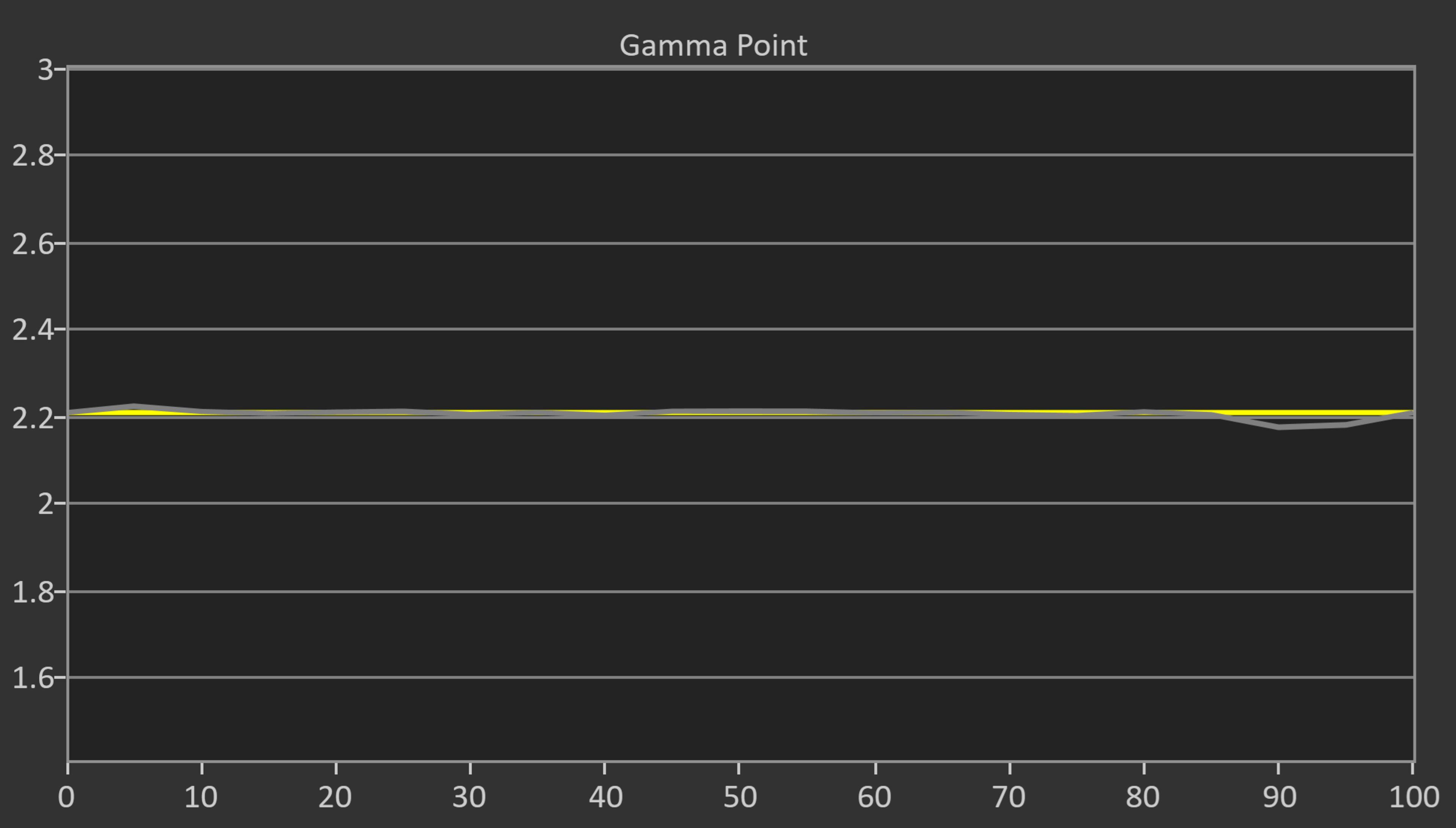 Unfortunately, the TCL Q77 Series has mediocre accuracy in SDR before calibration. The biggest issue is the white balance, which has noticeable issues in midtones and bright shades of gray. Blues are overrepresented, giving the TV a noticeably cool color temperature. Gamma is a bit too high across the board, but it's especially high with near-blacks, resulting in significantly crushed shadow details. Overall, color dE is decent, with a few noticeable issues in lighter shades of any color and in saturated blues.