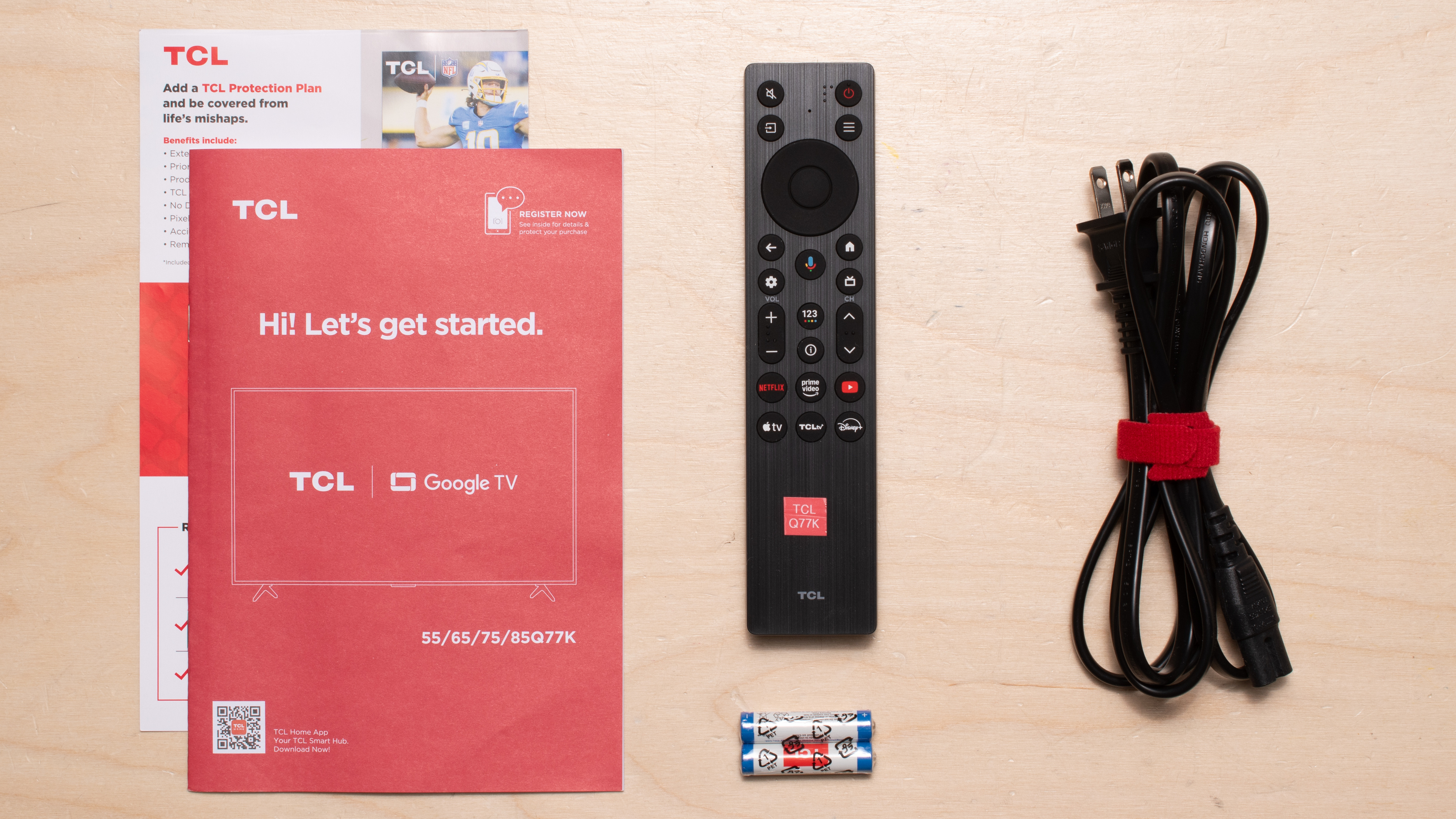 We bought and tested the 75-inch TCL Q77K, and most of these results are also valid for the 55, 65, 85, and 98-inch models. The 55-inch model has a lower maximum refresh rate at 1080p, and the 85-inch and 98-inch models both have a matte anti-reflective coating, so they handle light better in a bright room.
