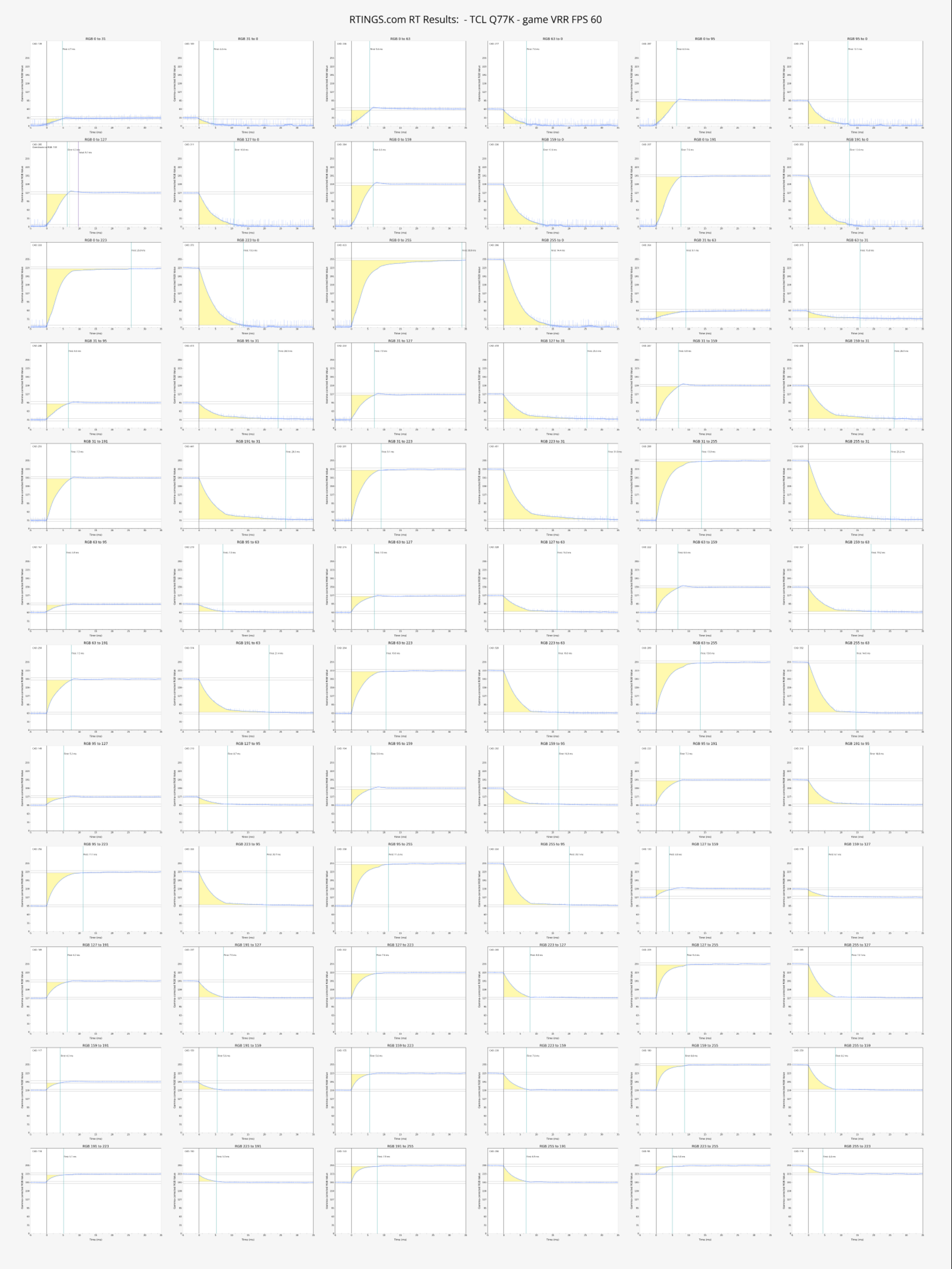The TCL Q77 has a mediocre response time at the maximum refresh rate of 144Hz with a 4k resolution. It struggles more with near-blacks, resulting in more noticeable motion blur in shadow details. It's a lot better in brighter shades, and motion is clearer overall than the Hisense QD7N and the LG UA77.