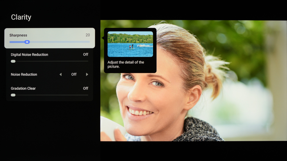 For our upscaling test, we set Sharpness to '20,' and it was set to '0' outside of that test. Sharpness processing was calibrated with no over-sharpening for low-resolution content.