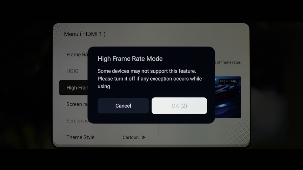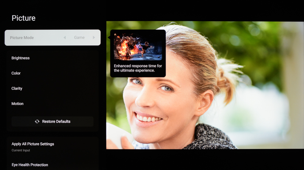 From the base SDR and HDR settings, very few changes are required for the best gaming experience. When you start gaming, it's best to switch to Game Mode to get the lowest input lag and use the recommended settings for SDR or HDR. This TV supports a variable refresh rate. As long as you're in Game Mode, it's automatically enabled. To enable the high frame rate feature, you have to enable High Frame Rate Mode.