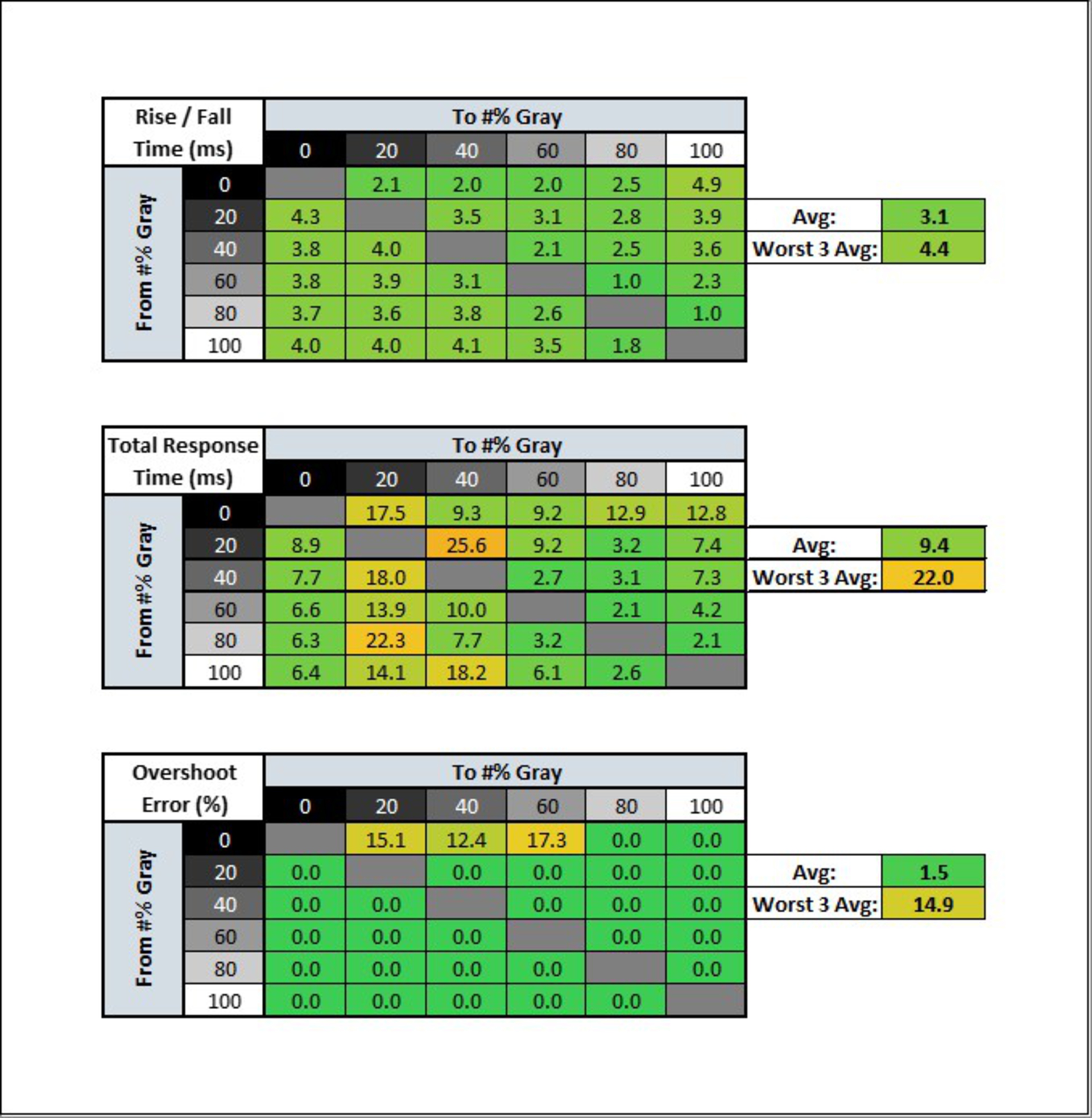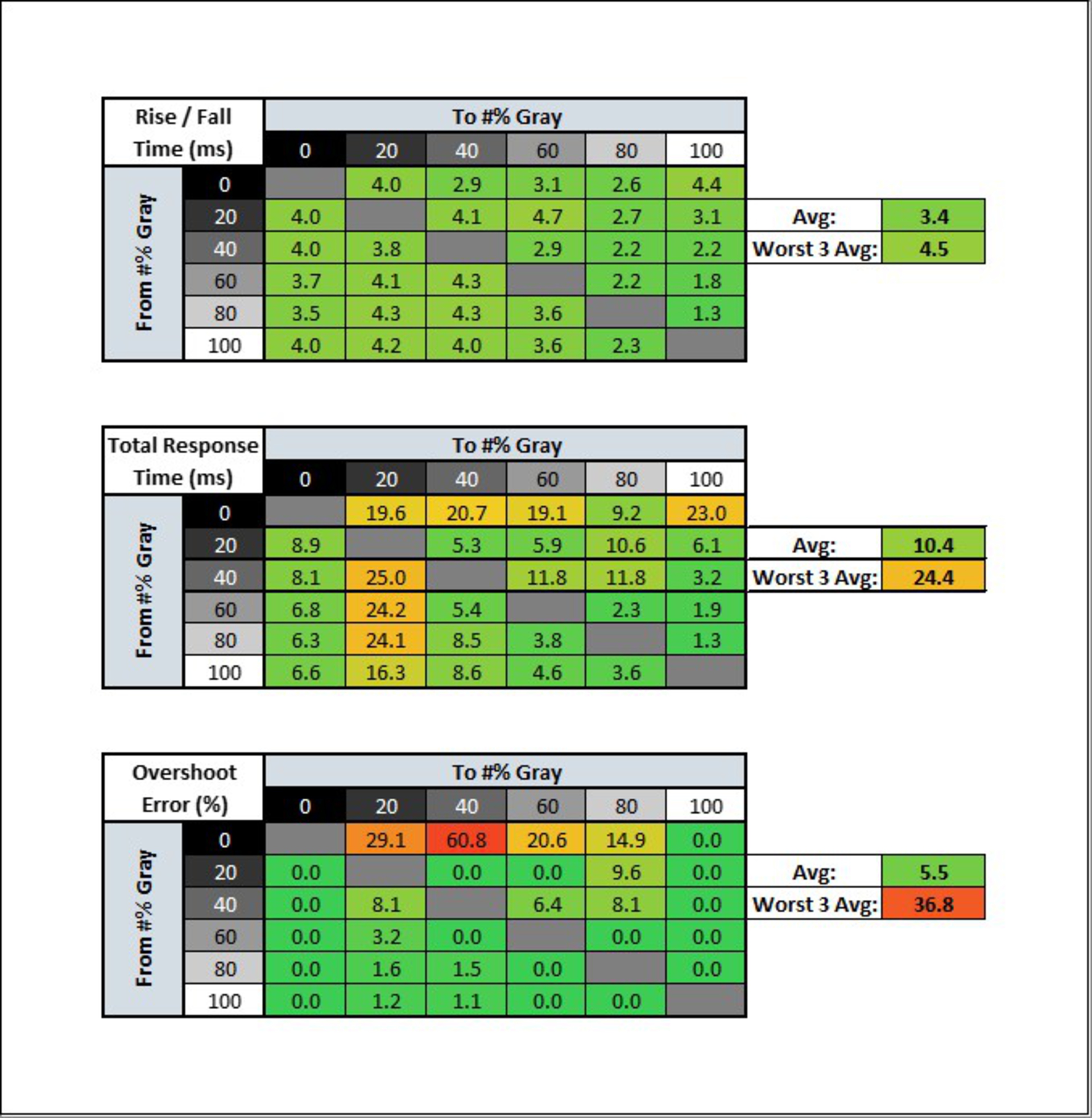 For example, there is substantial overshoot at 80Hz, which then stabilizes itself as you get closer to 120Hz, until you get past 144Hz where the overshoot errors again spike up. For this reason, you might want to maintain a stable frame rate around one of the TV's response time bracket 'sweet spots', for example, 60Hz and 120Hz, to ensure a good response time performance.