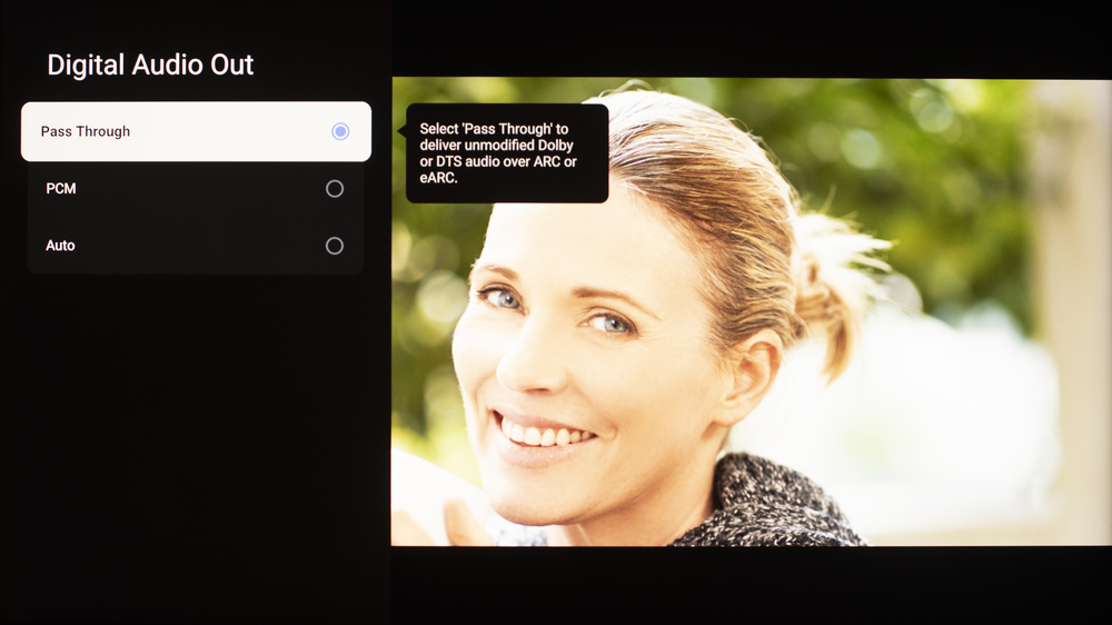 To make eARC work, set Audio Output to 'HDMI ARC/eARC,' with Digital Audio Out set to 'Pass Through.'