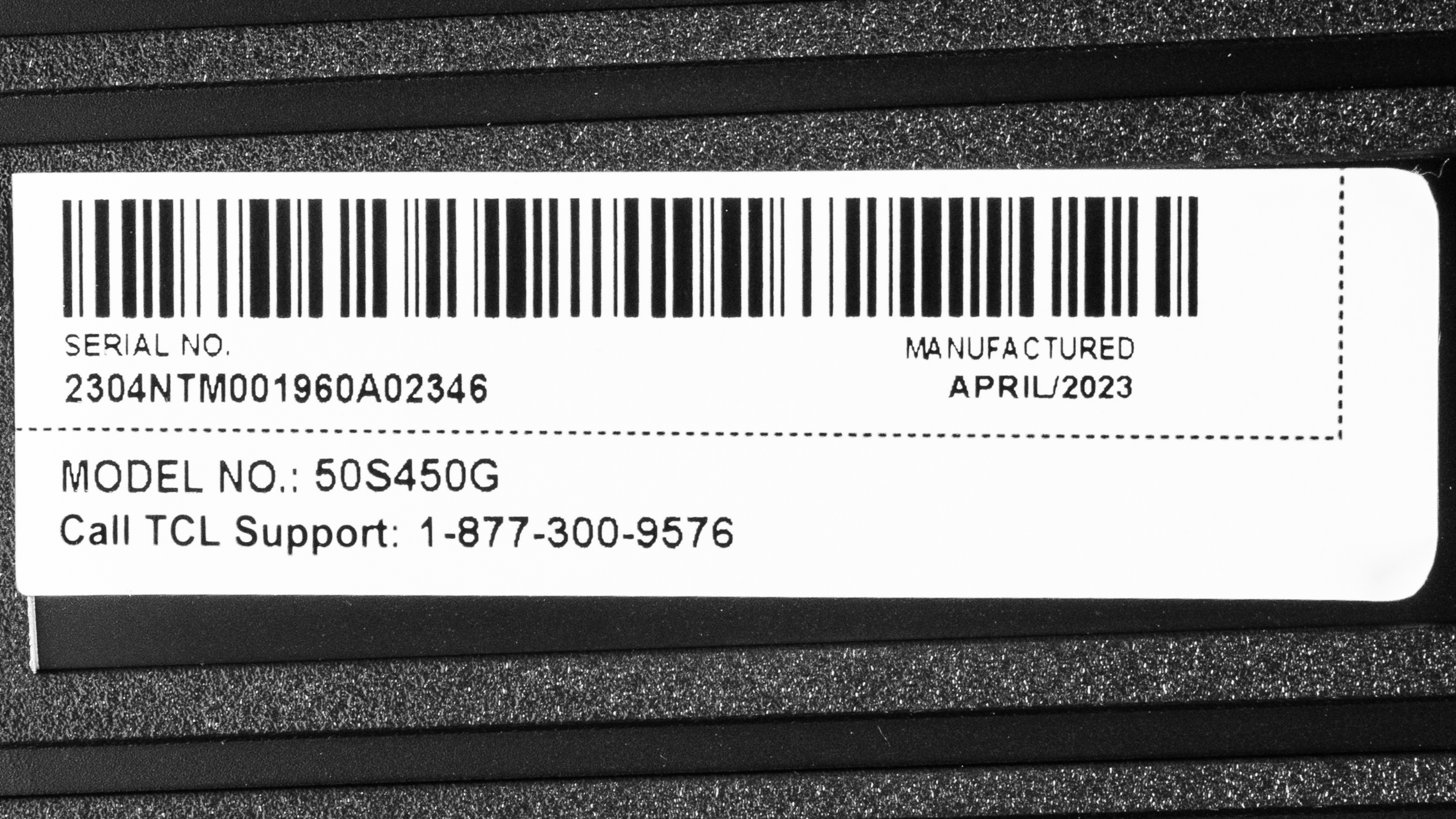 We bought and tested the 50-inch TCL S450G which is part of the TCL S4 lineup, and these results are also valid for the 43-, 55-, 65-, 75, and 85-inch sizes. There are a few different models in TCL's S4 series, which share a similar design but slightly different features and picture quality. The TCL S470G is very similar to this one, but has a different panel with a wider color gamut and a wide viewing angle, but much worse contrast. The TCL S450R is a Roku variant of this TV with a slightly different feature set, but similar picture quality. All sizes perform the same, but the 75-inch and 85-inch models have a slightly different stand and an additional USB port.