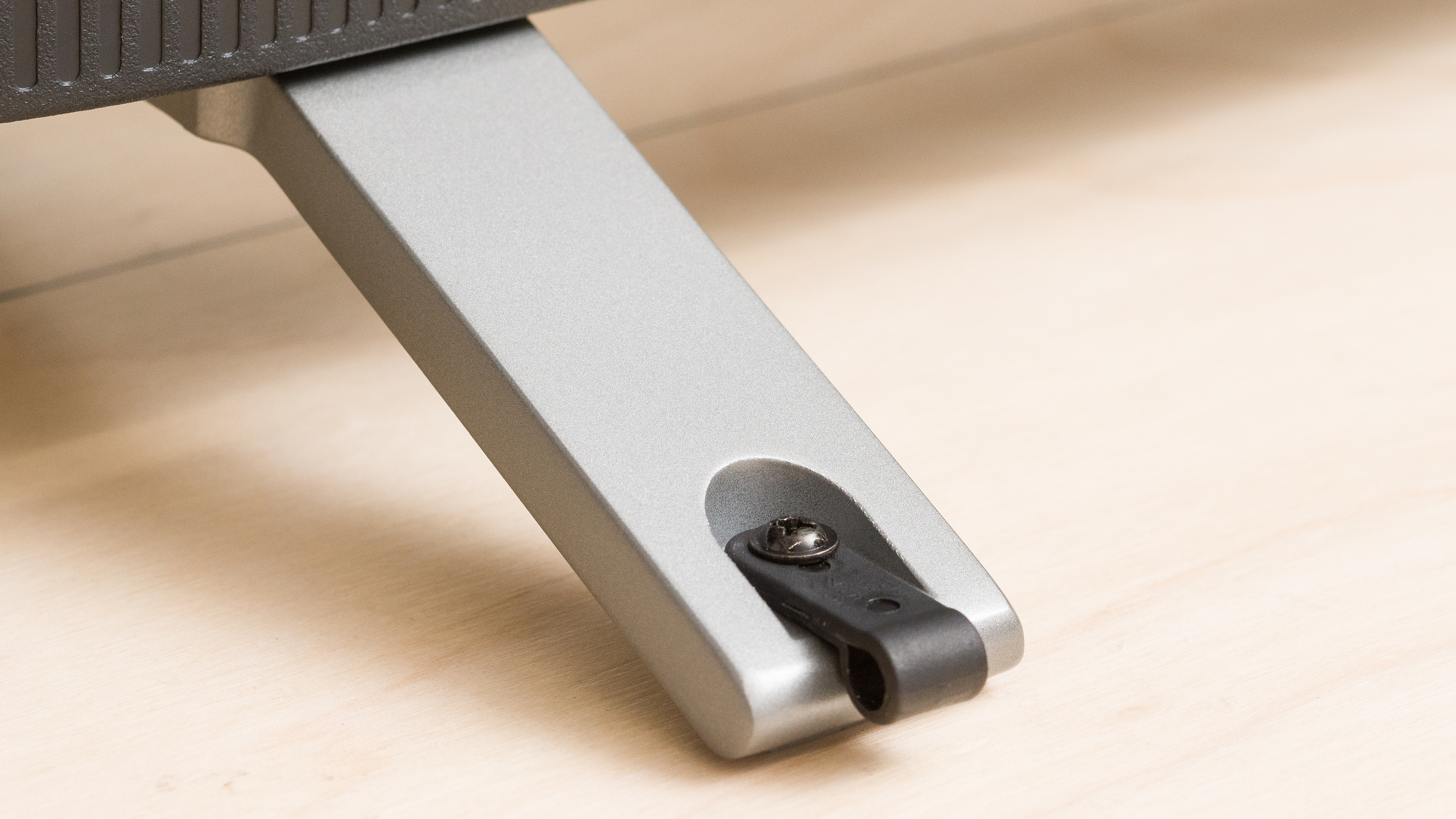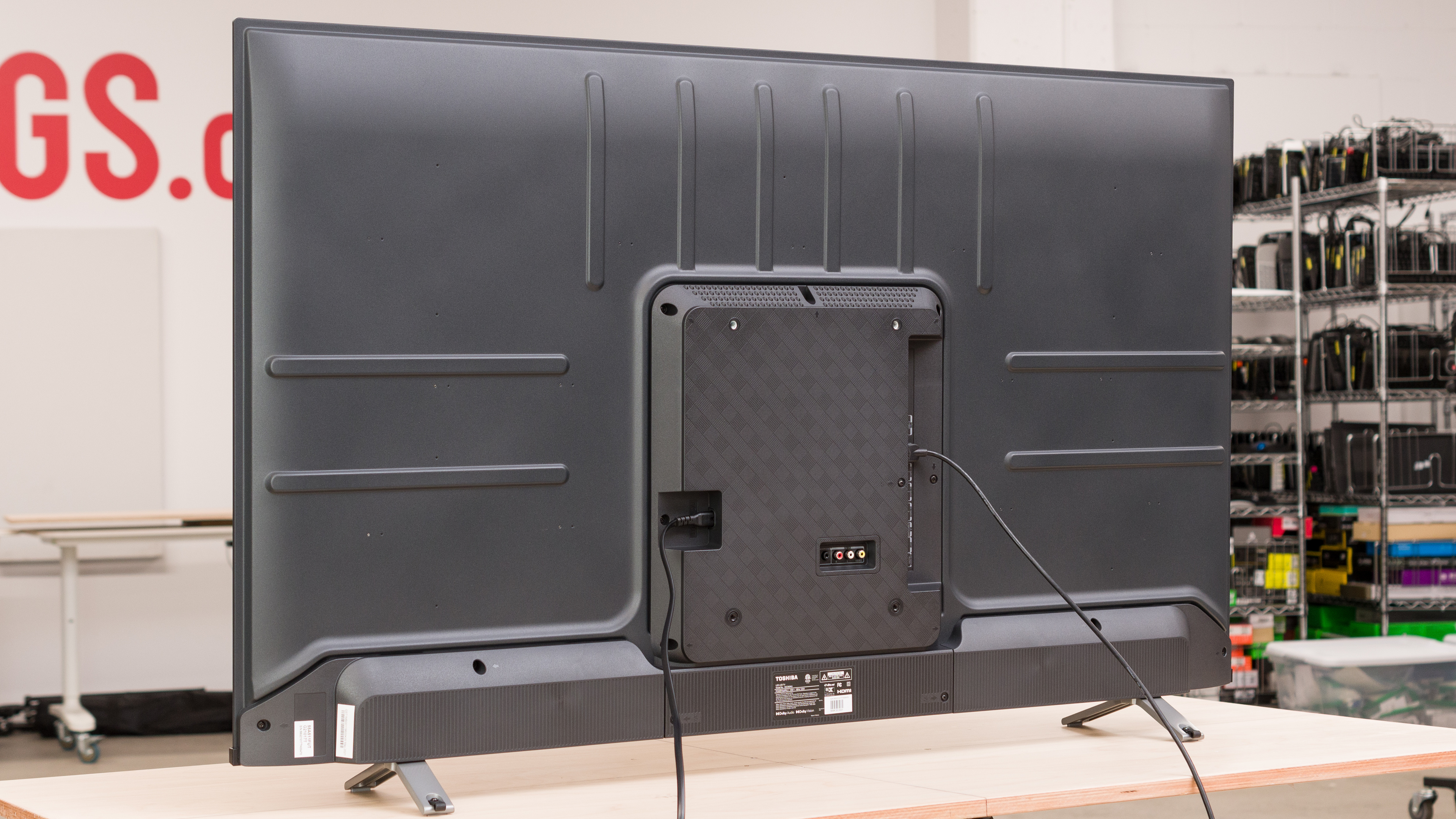 The back of the Toshiba C350 actually looks a lot like a Hisense TV, like the Hisense H6570G. The top part holding the panel is textured metal, and the parts at the bottom and on the inputs are both plastic. Sadly, there's nothing for cable management. There are hook-like objects on the back of the legs, but they don't do anything for the cables.