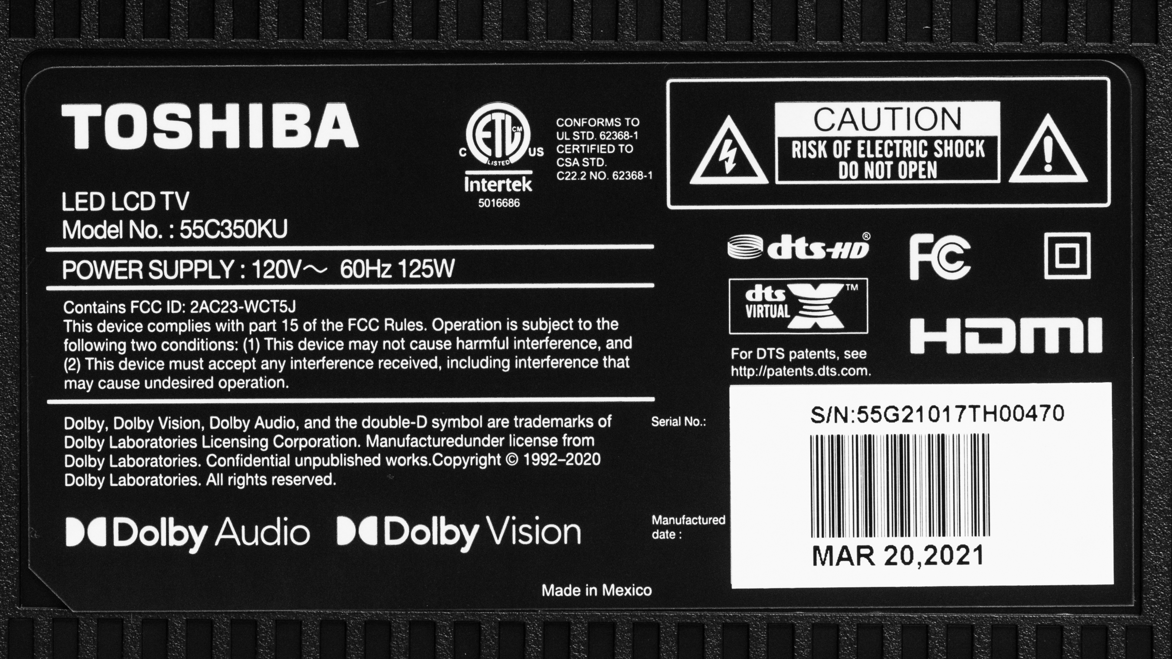 We tested the 55-inch Toshiba C350 (55C350KU), and this review is also valid for the 43, 50, 65, and 75-inch models.