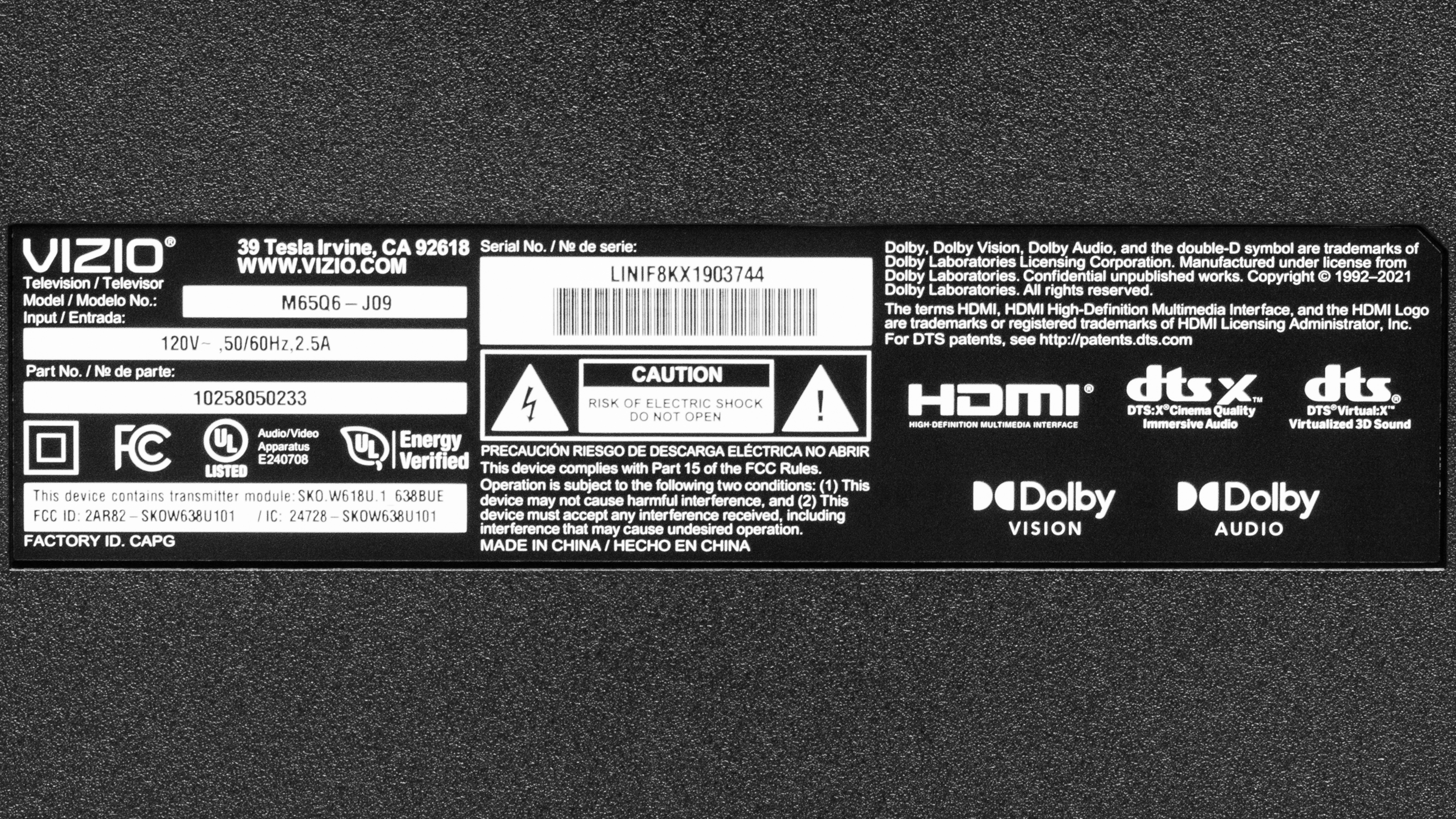 You can see the label for our unit here.