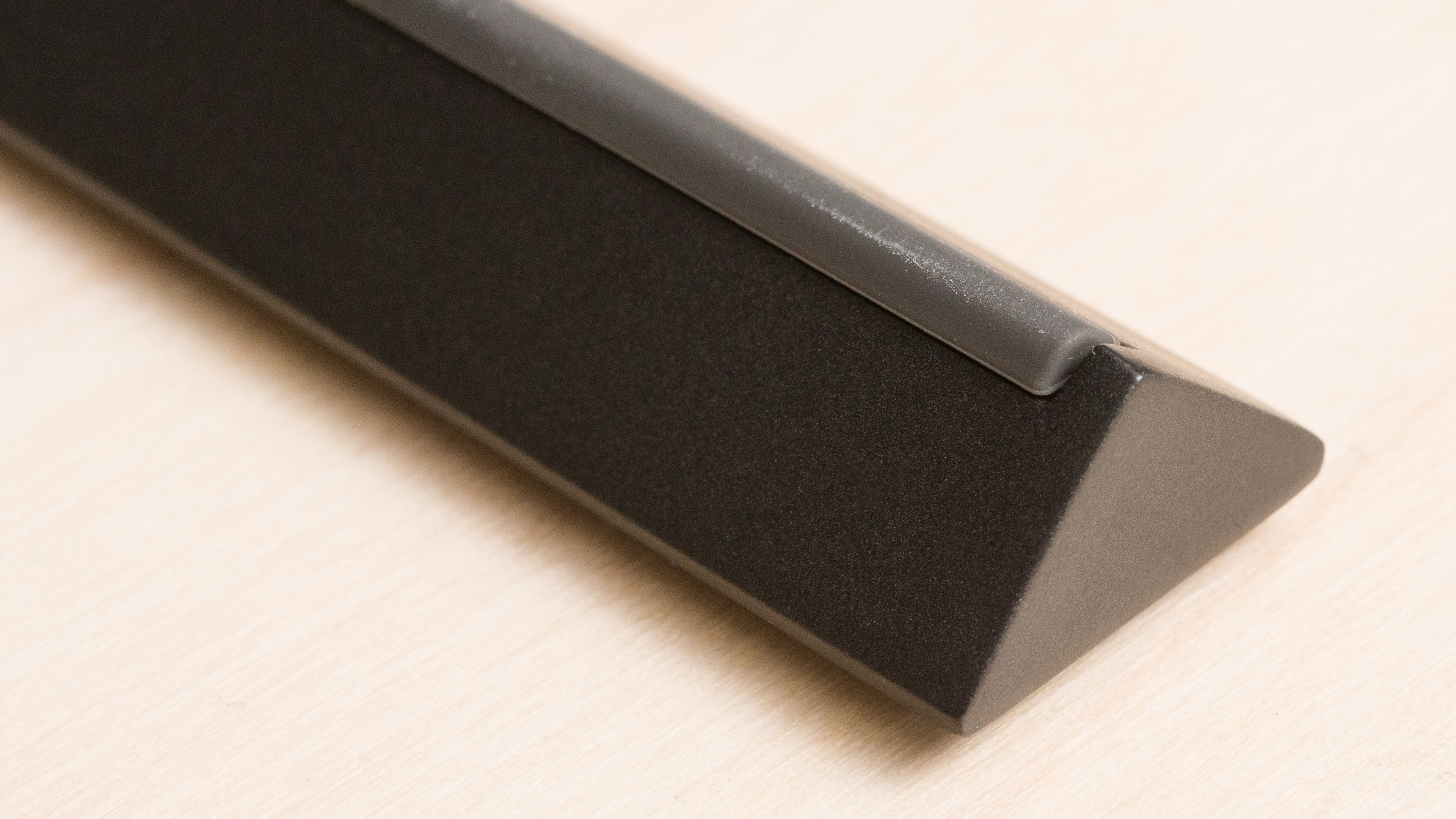 The Vizio P Series Quantum TV features unique feet that are designed to hold a soundbar on top. There's rubber padding on top of each foot to avoid scratching the feet or soundbar. You can raise the screen higher so that a soundbar doesn't block your view. In the regular position (pictured above), there's 1.38" from the feet to the screen, and raising them in the higher position gives you 3.5" of space, so most soundbars shouldn't block it.
