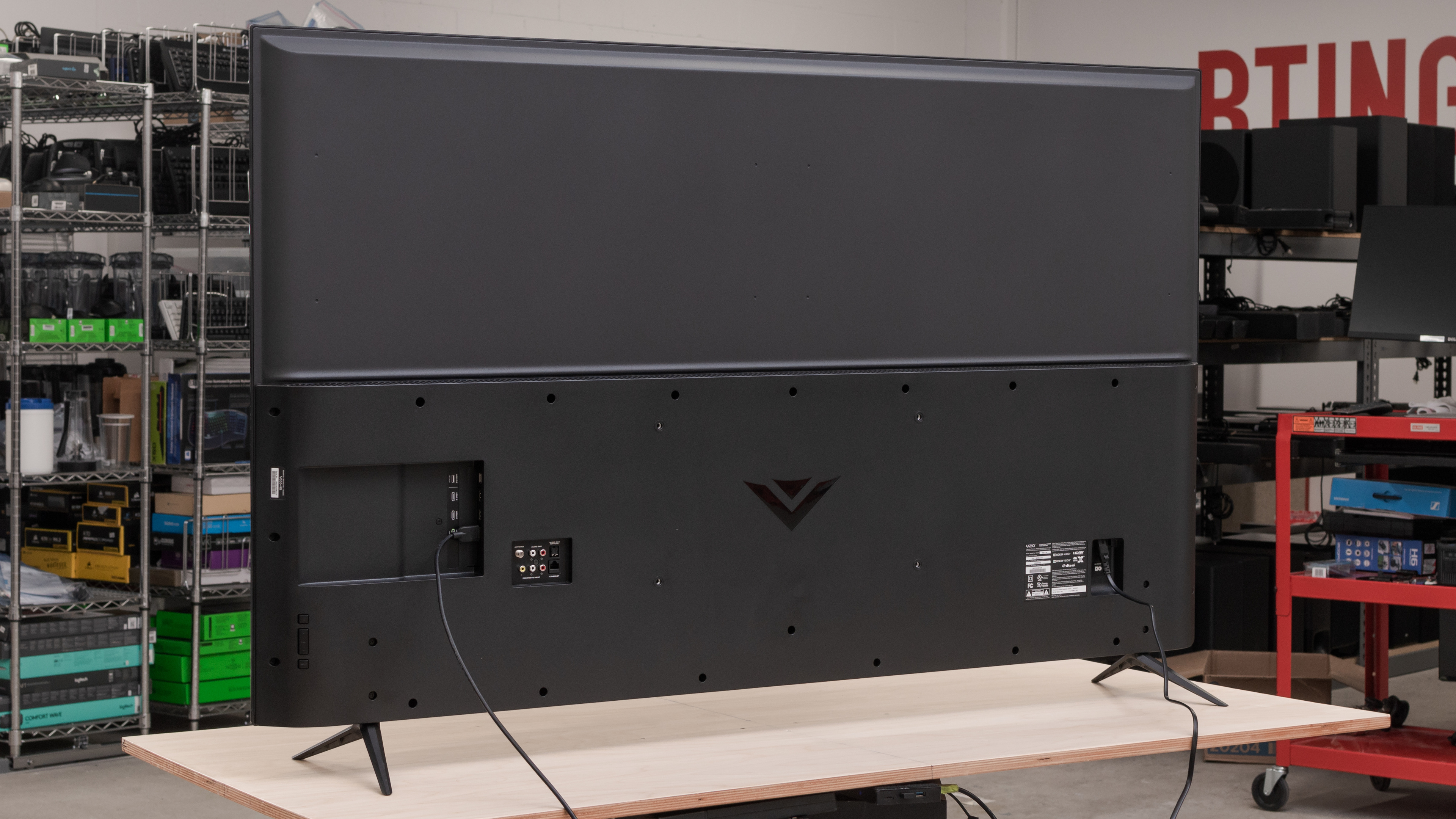 The back of the TV is plain. The top half is metal, while the bottom half is plastic. There's no cable management, and the inputs are hard to reach with it wall-mounted because some are back-facing and the others are side-facing but set into the TV.
