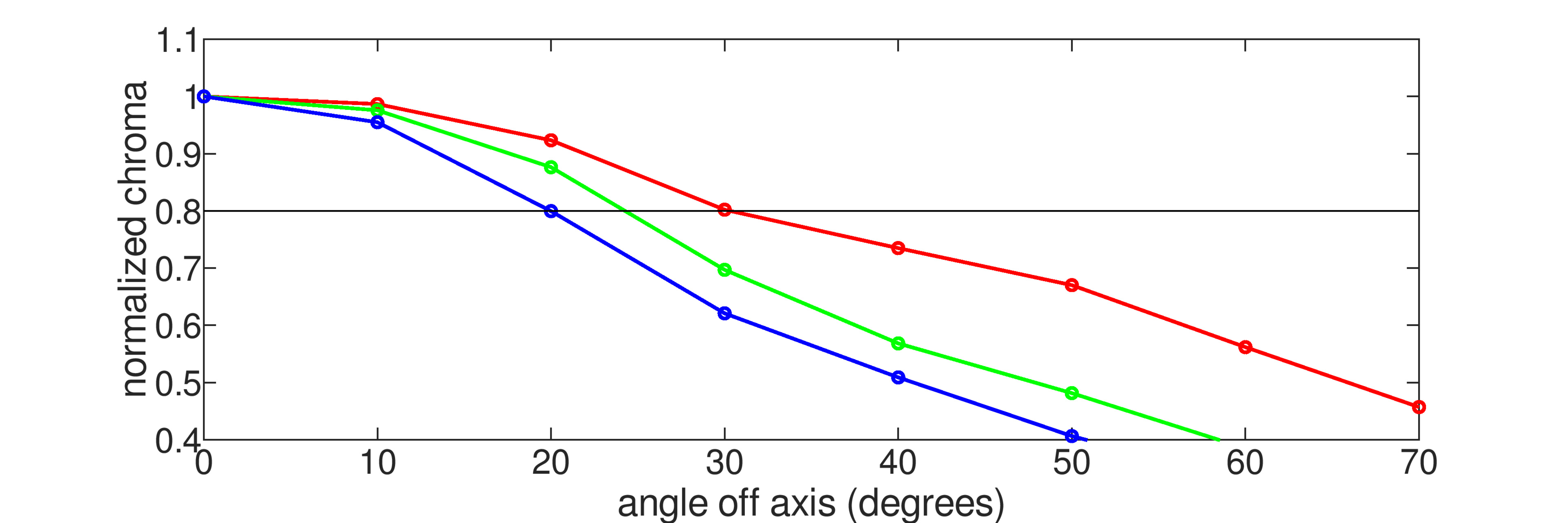 This TV has an optional Enhanced Viewing Angle setting that's marketed to improve the viewing angle. The results are with the setting off, but you can see the graphs with it on below. Unfortunately, it doesn't improve the viewing angle: