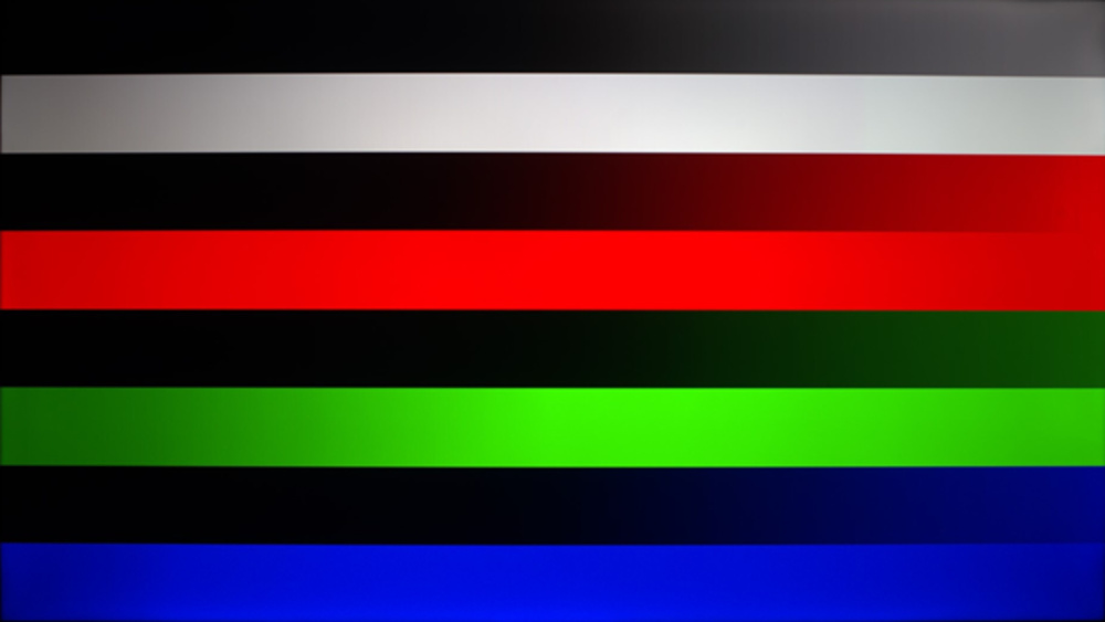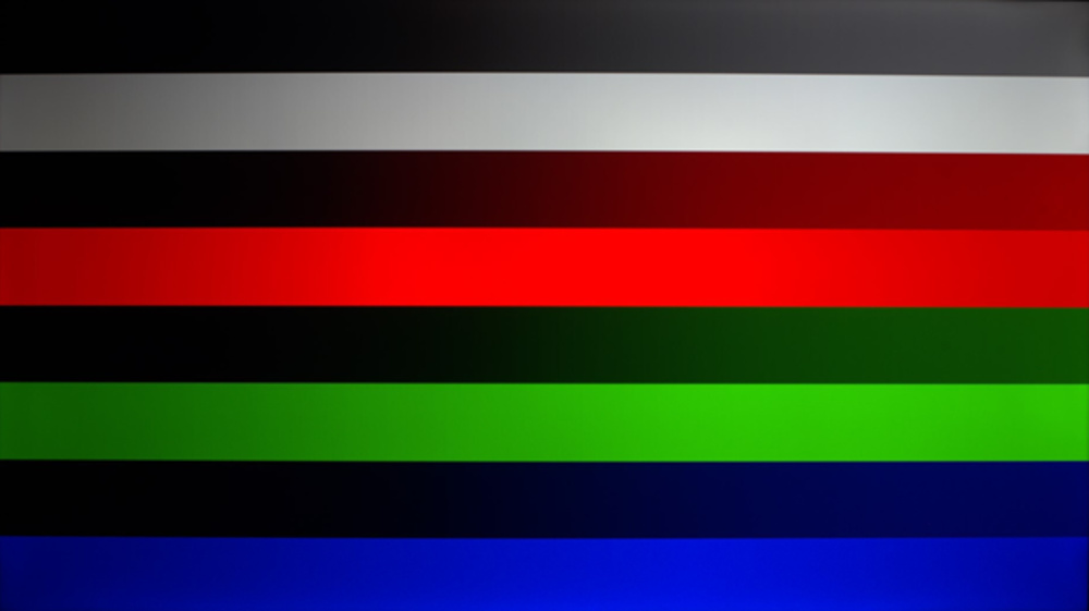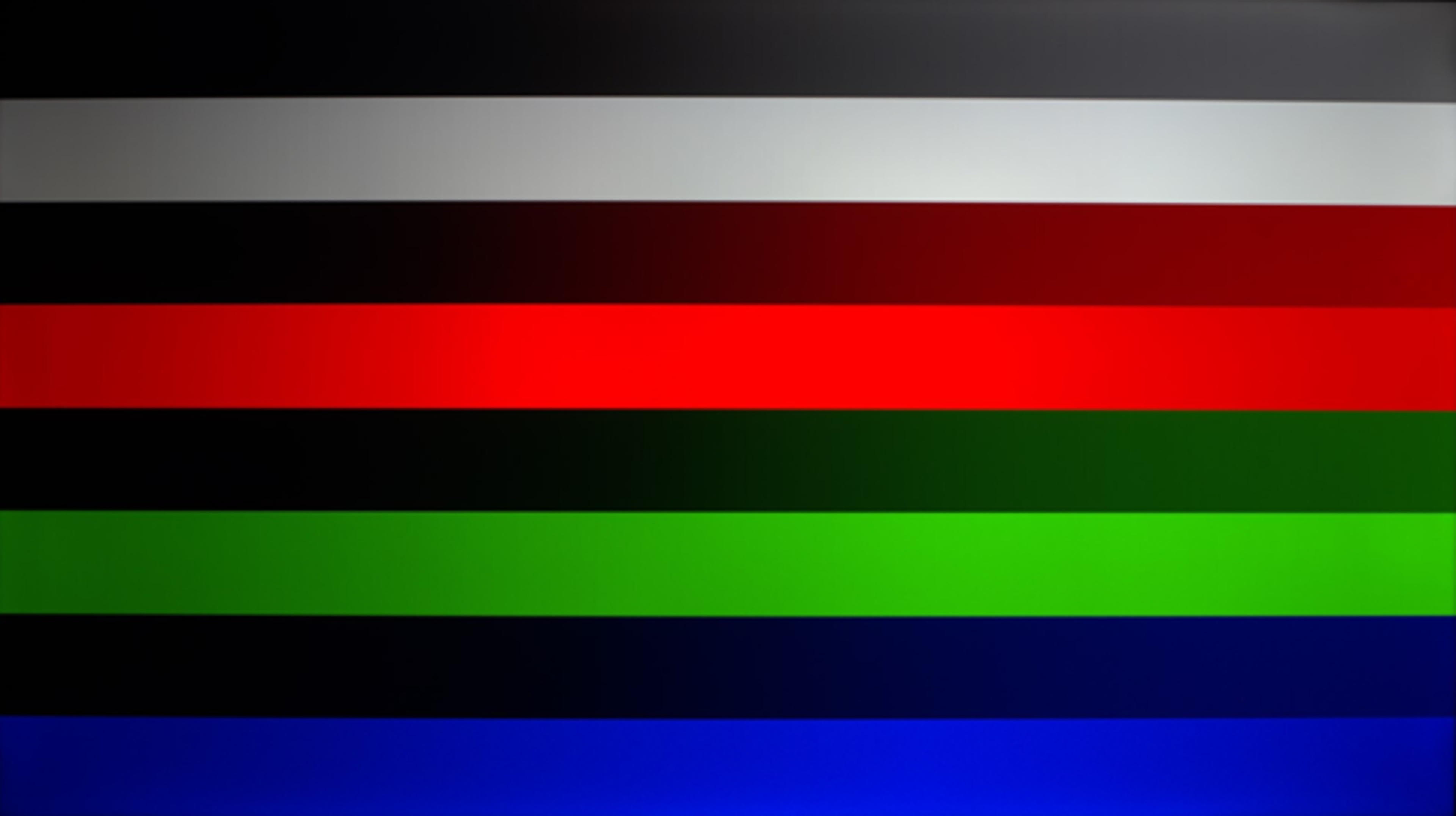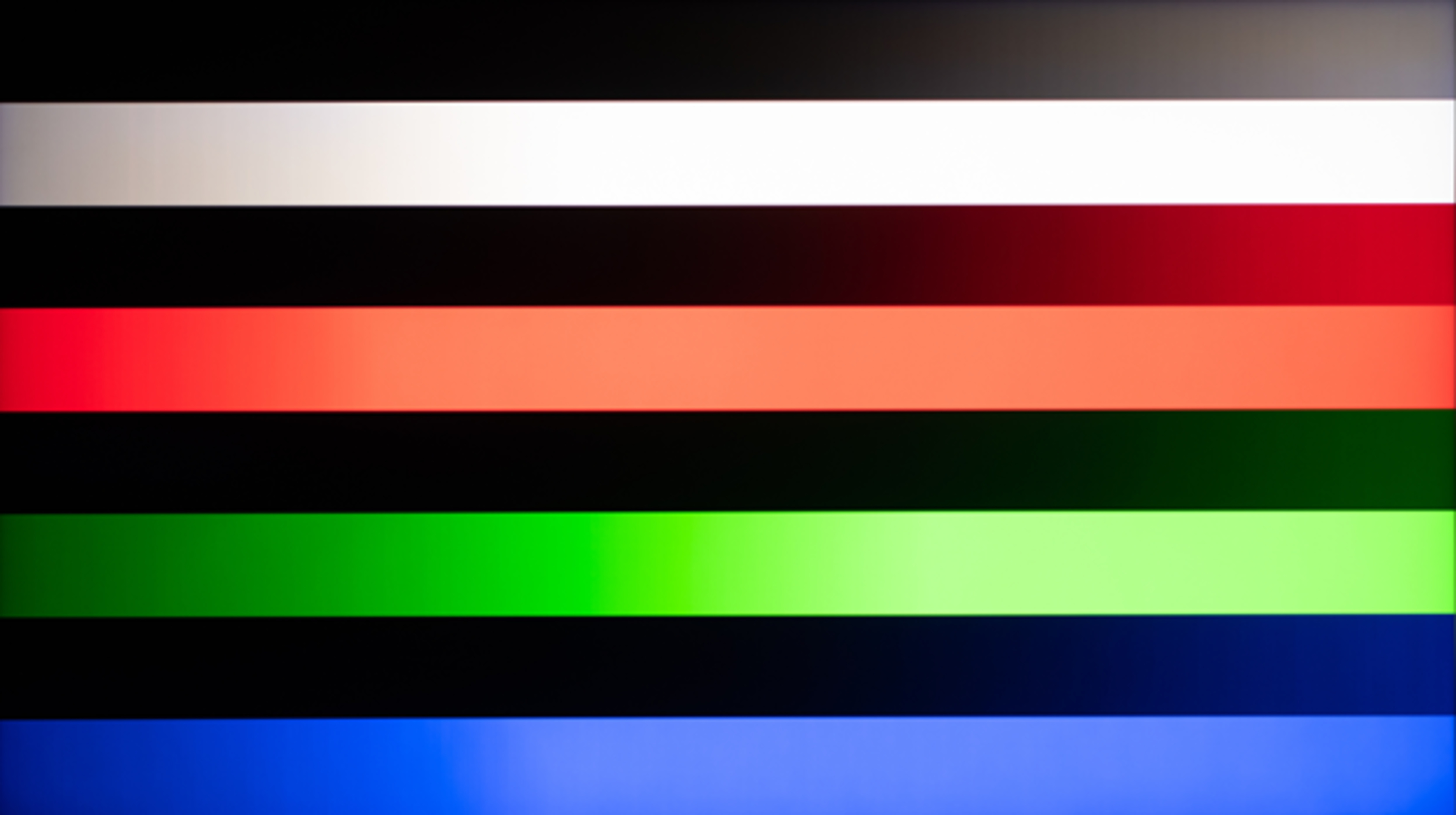We considered adding separate lines covering cyan, magenta, and yellow (CMY), but decided not to. Since TVs don't have CMY subpixels, those colors are produced by combining the other colors, so covering red, green, and blue will also directly show how CMY would look. We also validated the resulting test patterns using our Canon DP-V2411 reference monitor and confirmed there was no visible banding.