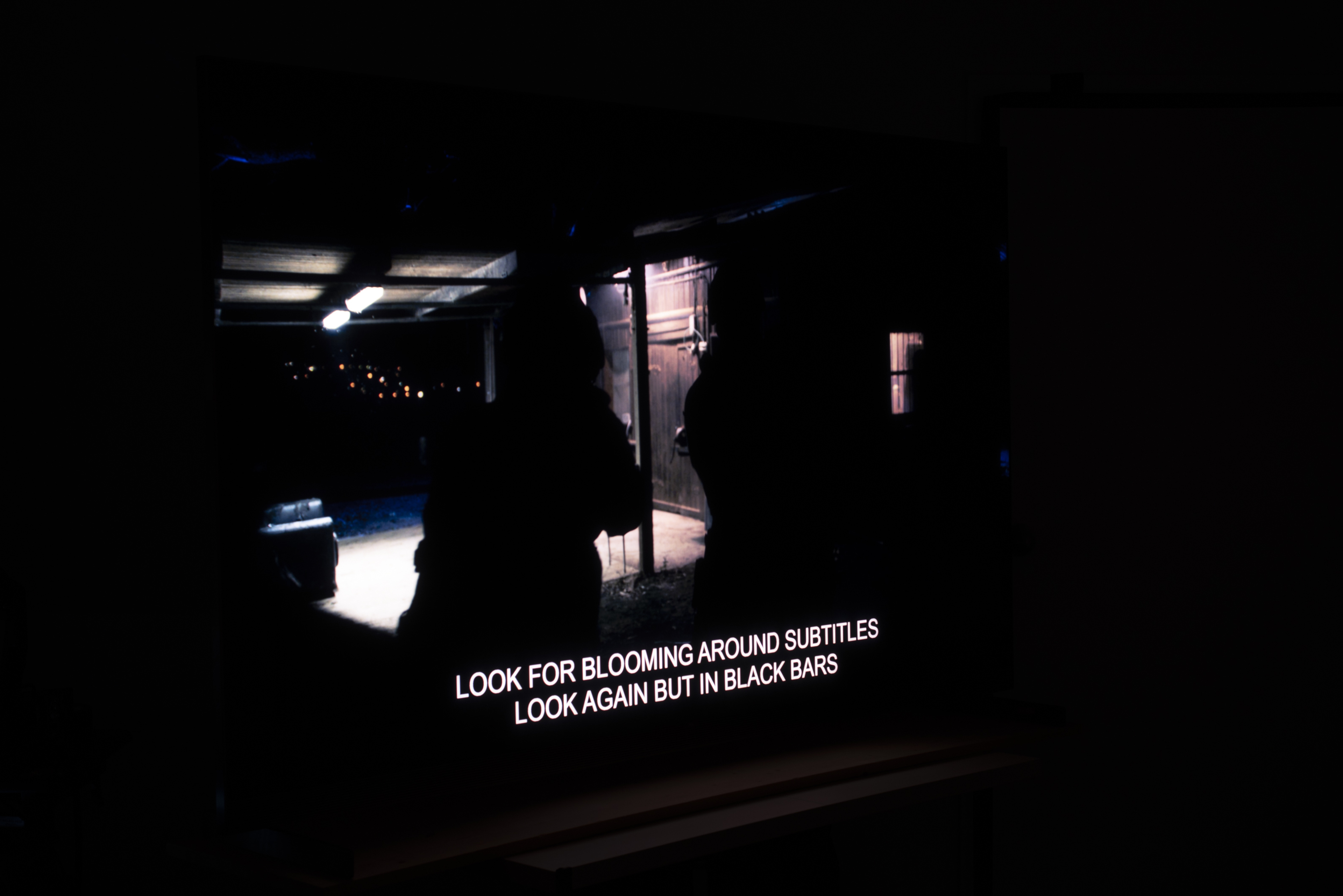 The lighting zone precision test looks at how well the backlight can dim the LEDs around bright parts of the scene. To test this, we display a static image on the TV and look for haloing around the subtitles and bright parts of the scene. We take a photo of the screen with the camera pointed diagonally and slightly down at the screen. The exact position of the camera varies a bit between TVs; this is done to ensure that the photo accurately captures how the TV looks in person and not the impact of the viewing angle.